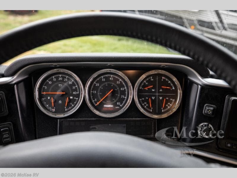 For true comfort and relaxation on any trip whether you are traveling near or far you will want a Newmar Ventana class A diesel motor home. These models are a cut above the rest with frameless double-pane tinted safety glass windows and a skylight above the shower which adds plenty of natural light. You will love the Bermuda Glazed Maple cabinets and the polished solid surface counter tops in the kitchen. When you need to get a little work done then simply set up the passenger seat work station. The polished porcelain tile floor in the kitchen, bathroom, and living room is beautiful, easy to clean, and durable! Get ready for any adventure with a Newmar Ventana!