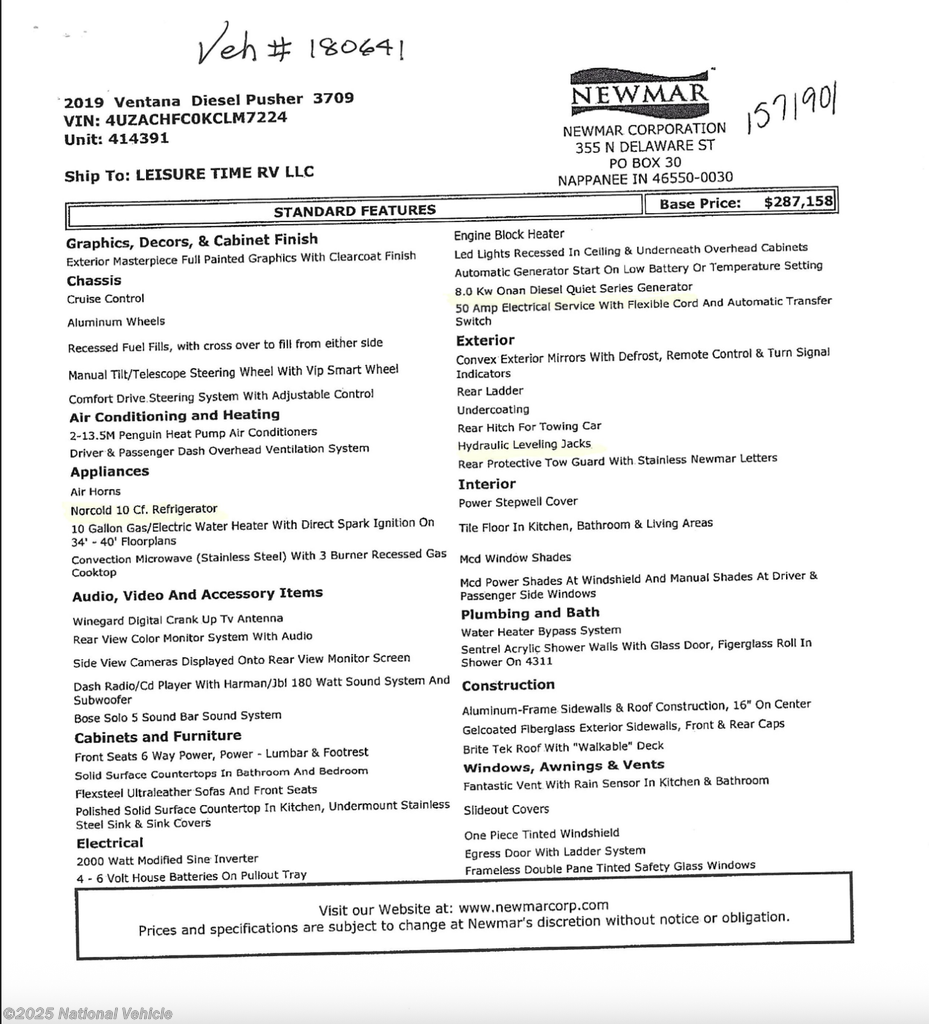 This 2019 Newmar Ventana LE is located in Yukon, Oklahoma. Please call 1-800-320-9557 and mention listing id: 180641.