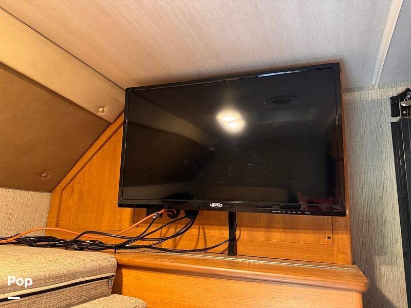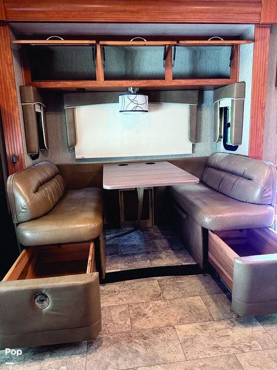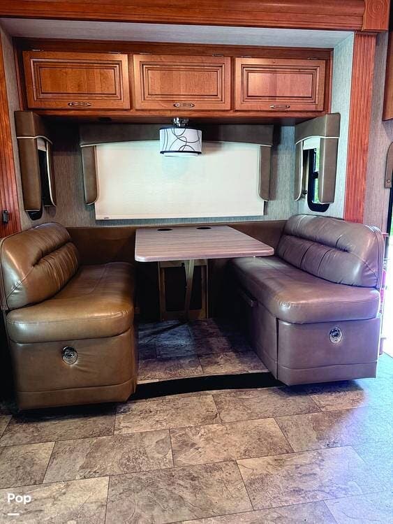 Relax in the reclining theater seats (an upgrade) or at the deluxe booth-style dinette sleeper (an upgrade) and enjoy the flat-screen TV.