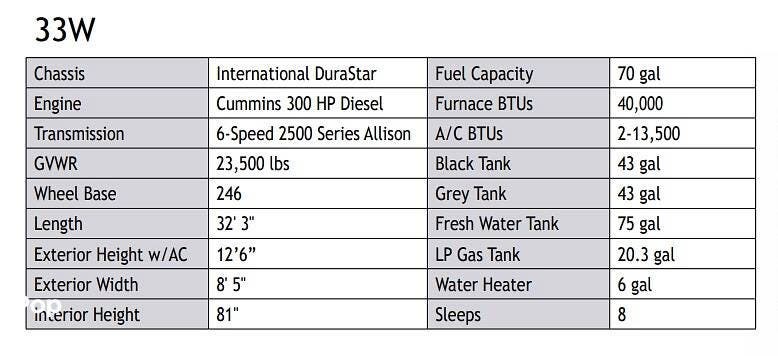 The Owner has also upgraded to the 15k BTU AC with heat pump (an upgrade), a touch screen stereo with navigation (an upgrade), and a 1200W inverter (an upgrade)