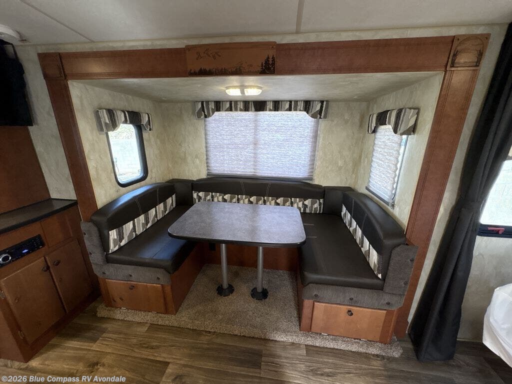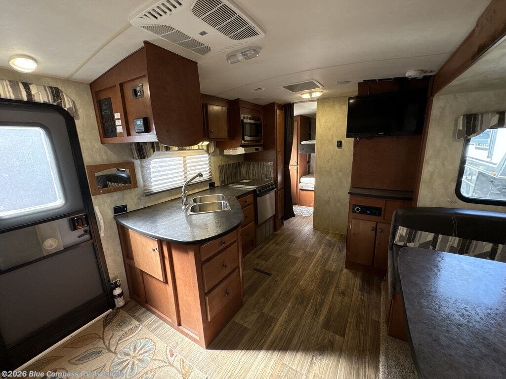 A set of rear bunks, a single slide, and double entry doors makes this Northwood Nash 25C travel trailer unique. You will also love the exterior features like the Carefree Travl'R 12V awning and the exterior shower for your kiddos to clean up at and not drag mud throughout the trailer! There is a U-shaped dinette big enough for your family to eat at and even play a game or two, as well as transform into an extra sleeping space. When you close the privacy curtains, the front bedroom can become a private retreat from the chaos!