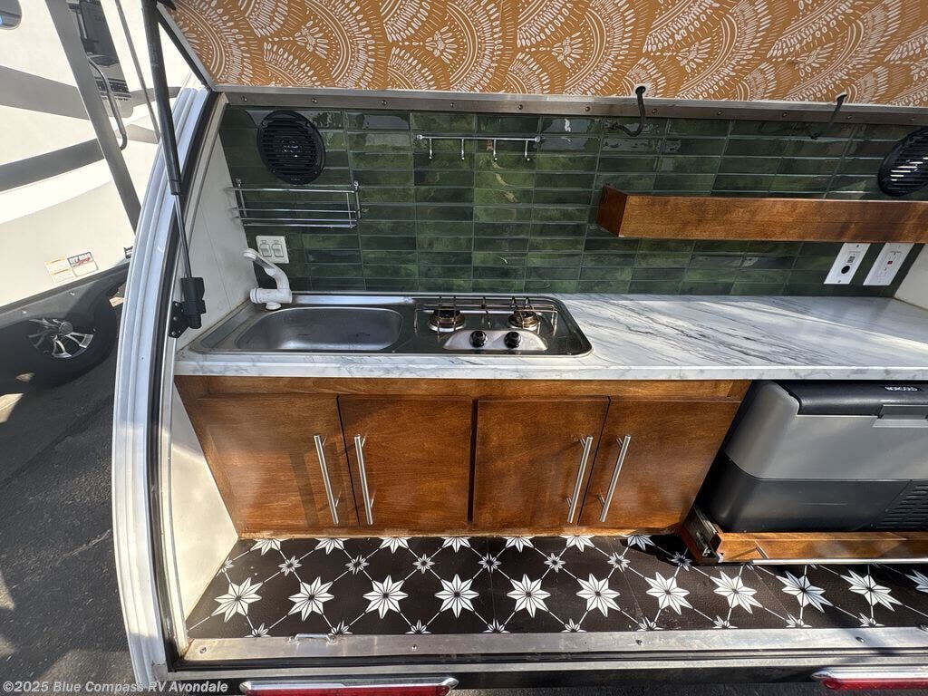As you tour the countryside and explore new places, you will find that this TAG teardrop trailer will become an invaluable addition to your travels. Its lightweight design is what makes it easy to tow behind most vehicles, but its modern conveniences, such as a microwave, sink and stove combo, and the 19" entertainment center including a 19" TV, stereo system, Bluetooth capability, and a front AV auxiliary input are what make it an enjoyable part of your travel plans. This trailer also provides complete accessibility because of the two entry doors on either side of the trailer. Come see what else makes this easy to tow and easy to store trailer popular with outdoor enthusiast!