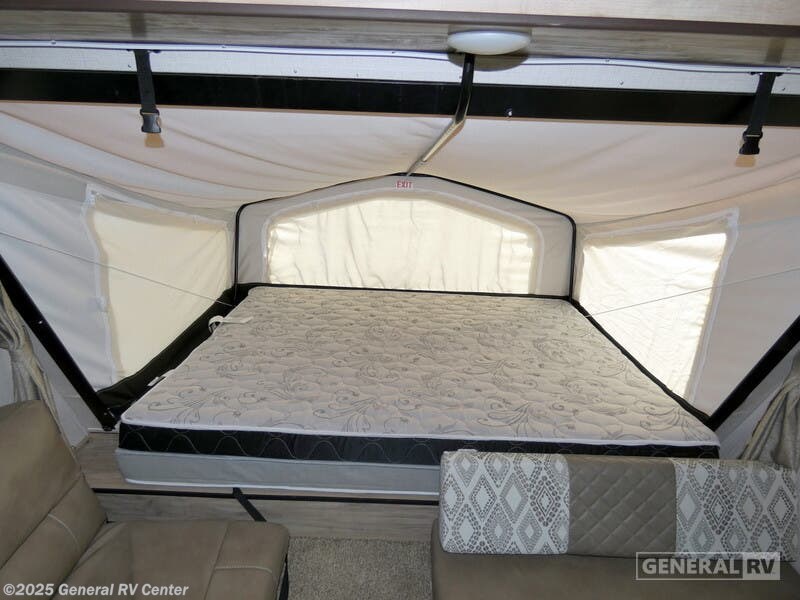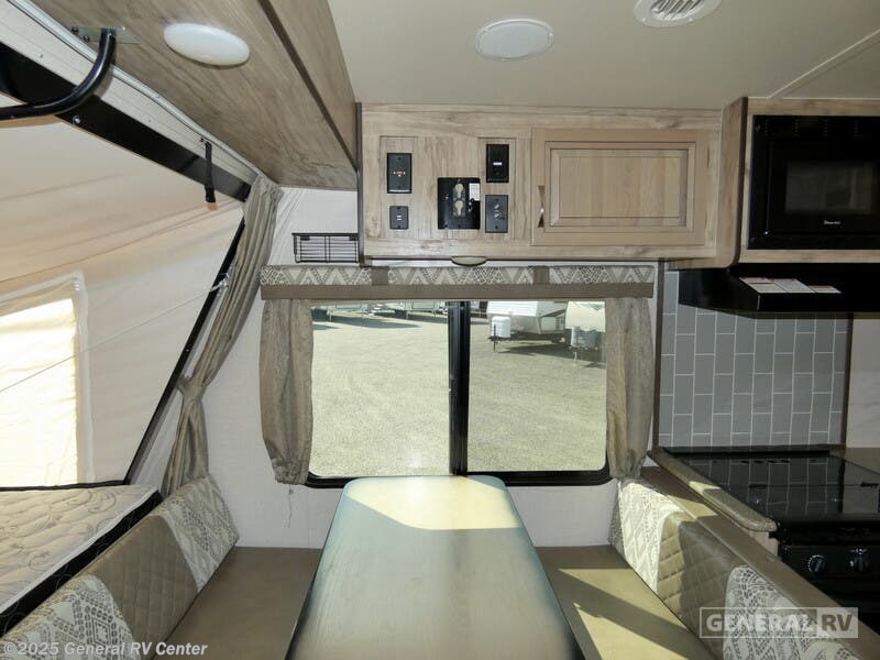 2019 Palomino 163X travel trailer highlights: Expandable Queen Beds U-Shaped Dinette Slide-Out Full Kitchen Lightweight Design Sleeps Up to Seven Whether you're planning a weekend getaway or an extended road trip, this hybrid travel trailer offers the perfect mix of comfort and versatility. With expandable queen beds at both ends, you get the open feel of tent camping with the protection and convenience of solid walls. Inside, the large U-shaped dinette sits on a slide-out to maximize your living space. It’s perfect for meals, game nights, or relaxing indoors—and it also converts into an additional sleeping area for guests or kids. The full kitchen includes a three-burner cooktop, oven, microwave, and a double-door refrigerator, making it easy to prepare your favorite meals on the go. There’s plenty of cabinet space to keep all your kitchen essentials organized. The full rear bathroom offers a corner shower, toilet, and vanity, so you can skip the campground bathhouse. With ducted A/C, a propane furnace, and a power awning with LED lighting, you’ll stay comfortable no matter the weather.