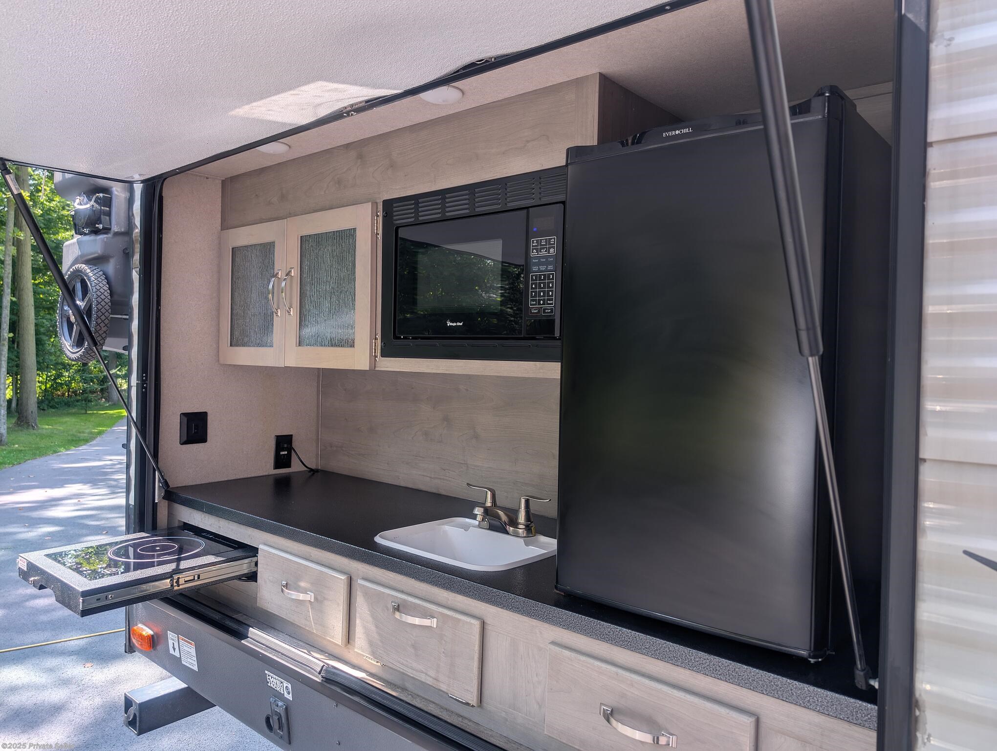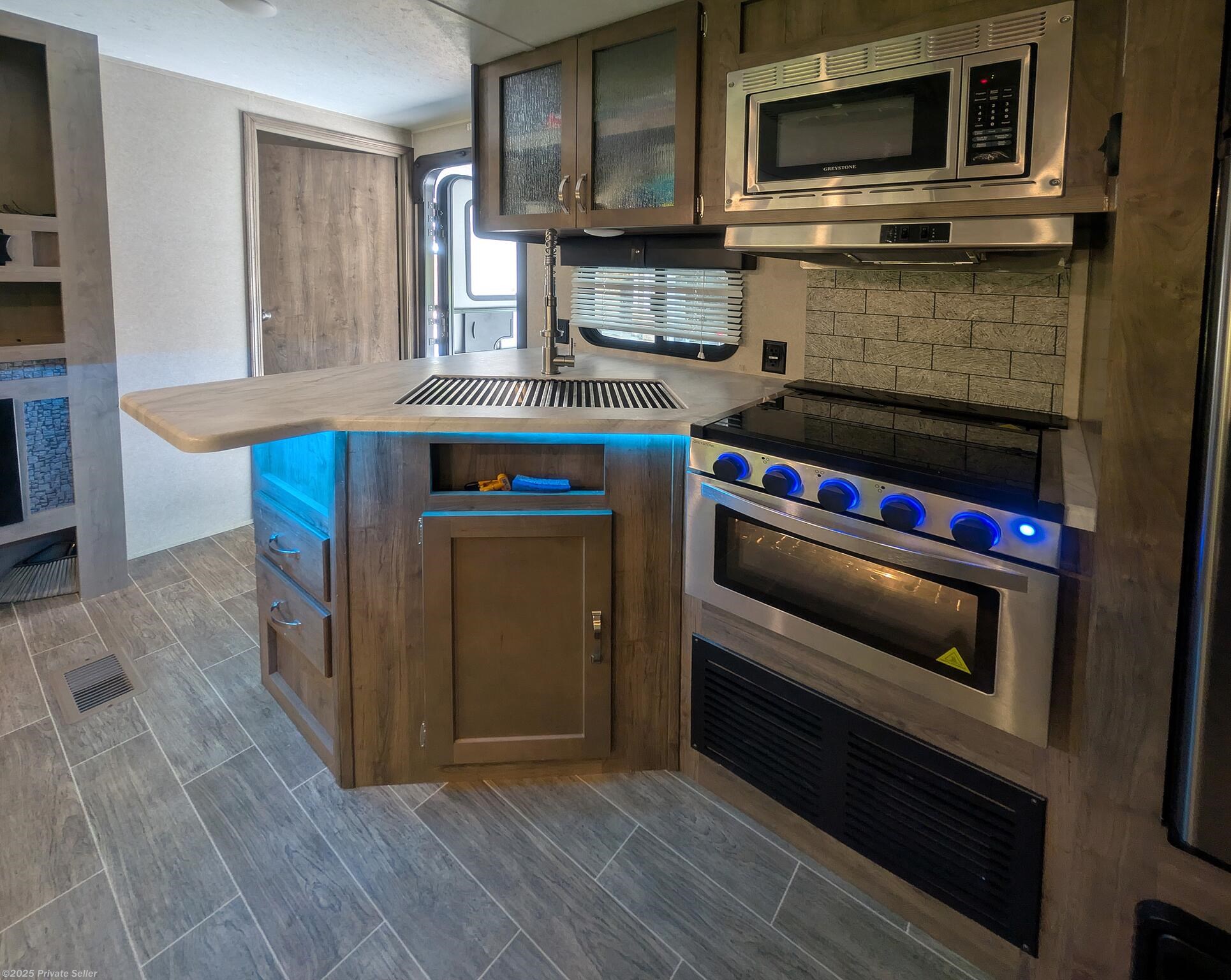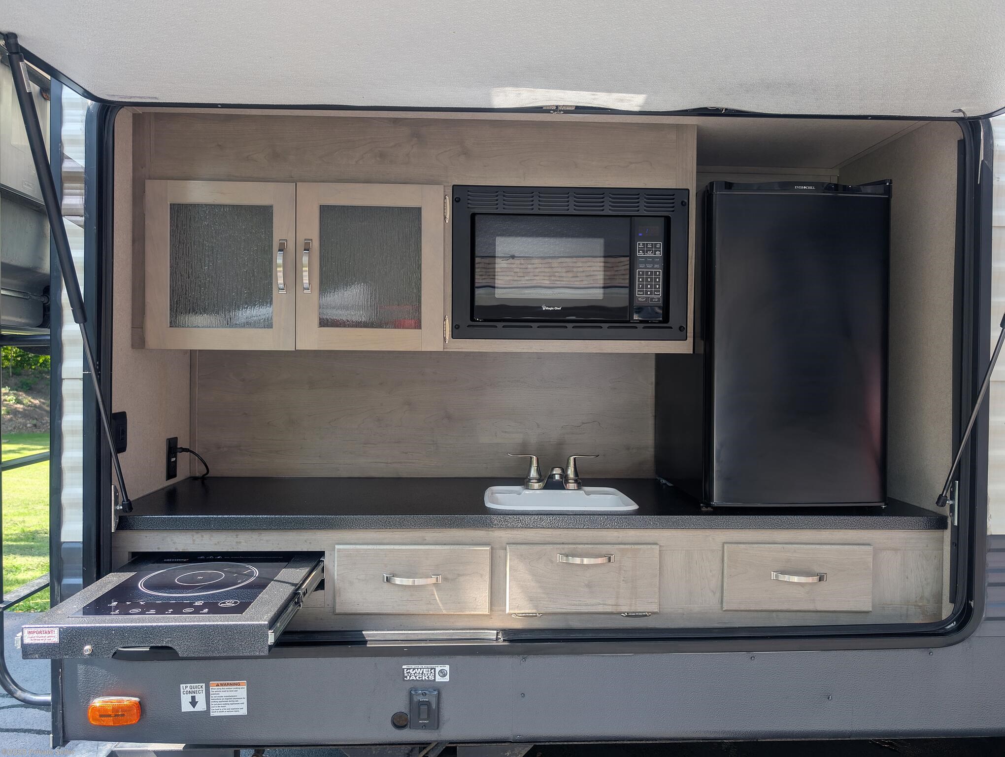 Everything you need for the perfect RV trip is packed into this 2019 Palomino Puma 32RBFQ. Ready to be a proud Palomino owner? This 2019 Palomino Puma 32RBFQ is the perfect fit. The sleep capacity allows you to bring up to 10 along on your travels in this rig. With three slides, this rig feels roomy and spacious inside. Entertain or cook up a cozy meal just for you in this RV kitchen equipped with the fridge, oven. Memories are made around the dinner table, and this booth dinette is where you’ll make them. Comfort is important when RVing, and you’ll find just that with the queen bed. The heating option will keep your travels at the perfect temperature. The 51 gallon fresh water tank is just right for easy RV traveling. While the inside of this rig is enough on its own, the outside also features aluminum entrance steps, awning, exterior refrigerator, exterior speakers, external shower, ladder, outside kitchen, power awning, power stabilizer jacks, roof vent, screen door, skylight, spare tire kit, stabilizer jacks and tinted windows. An outside shower makes it easier to keep your adventure rig clean. The outside kitchen allows you to enjoy the Great Outdoors at meal time.