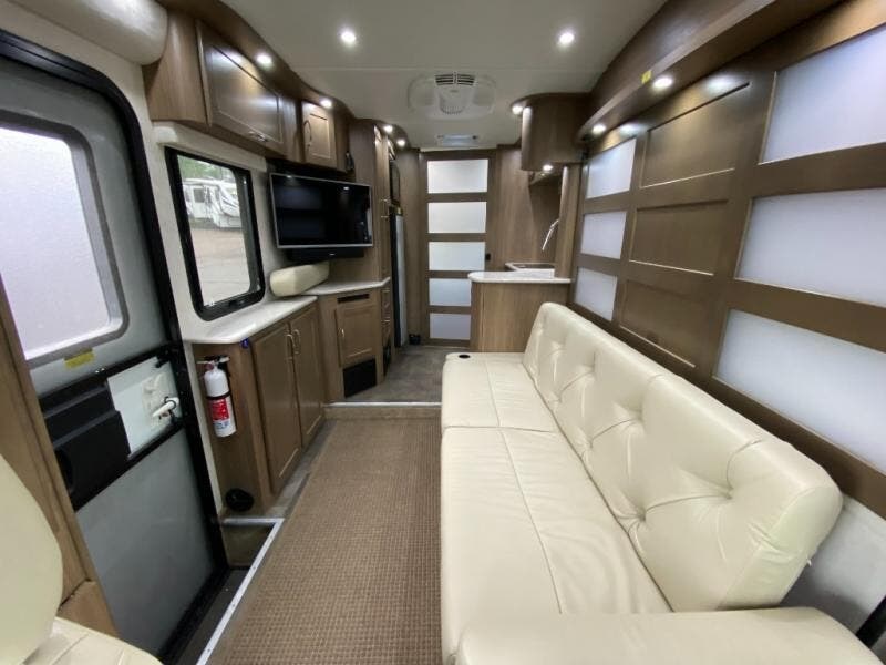 When you're ready to hit the road come check out this Pleasure-Way Plateau XLMB Std. Model motorhome! It has plenty of at home features you desire while on the road, like the microwave/convection oven and the LED lighting. With the Murphy Bed, you will experience a good night's rest on the memory foam mattress and enjoy the convenience of converting it back into a sofa for a daily seating area. You have everything you will need to get ready for your days inside the rear bathroom with the 32" glass and Corian shower, the Thetford china bowl pedal flush toilet, and the vanity sink with storage space. When you're ready to wind down your nights, you can either watch your favorite movie on the 32" LCD LED TV or grab a chair and relax underneath the power awning!