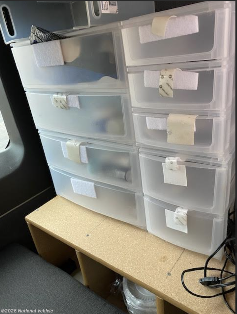 Functionality continues with a brown water holding tank system, making off-grid travel easier and more self-sufficient. The van is also equipped with practical extras that enhance both safety and comfort. Included with the sale are tire chains, a jack and spare tire setup, coffee pot, portable fan, crock pot, and additional travel essentials-saving you time and money outfitting your camper.