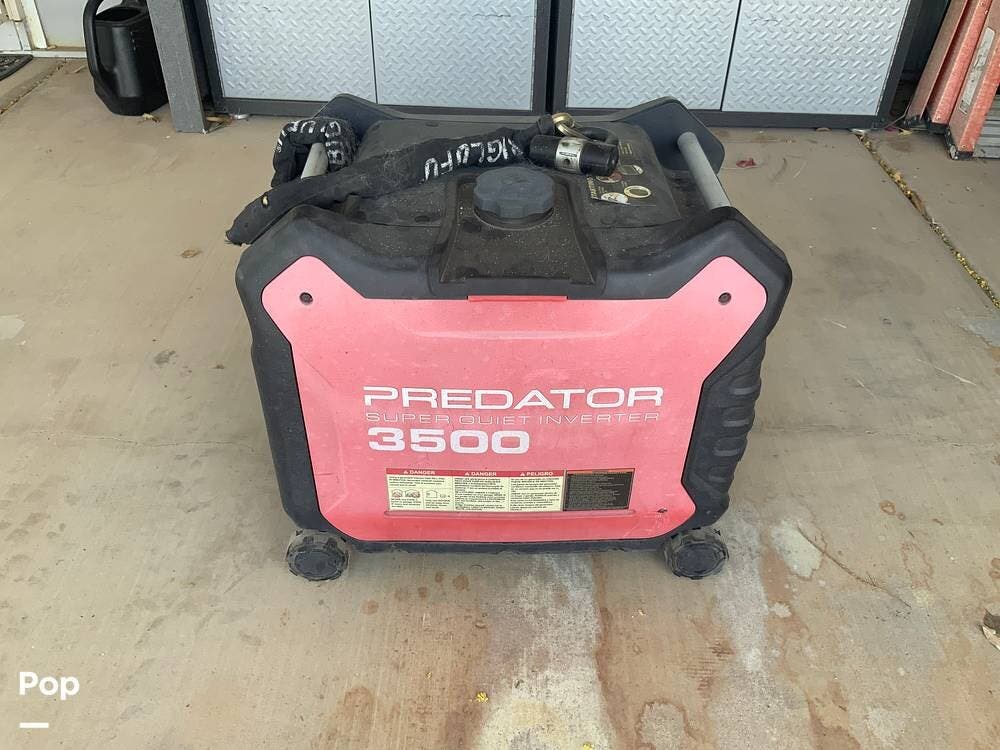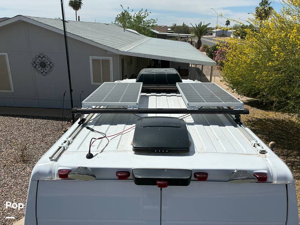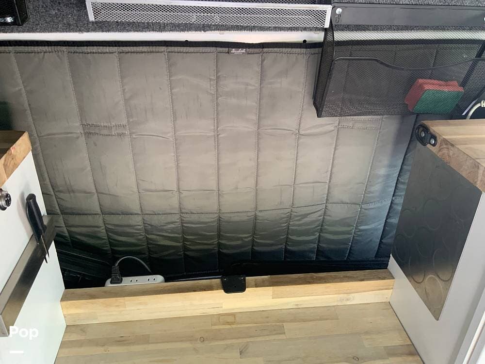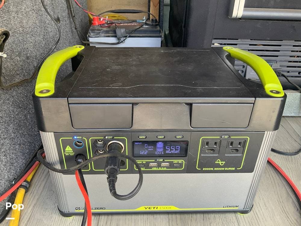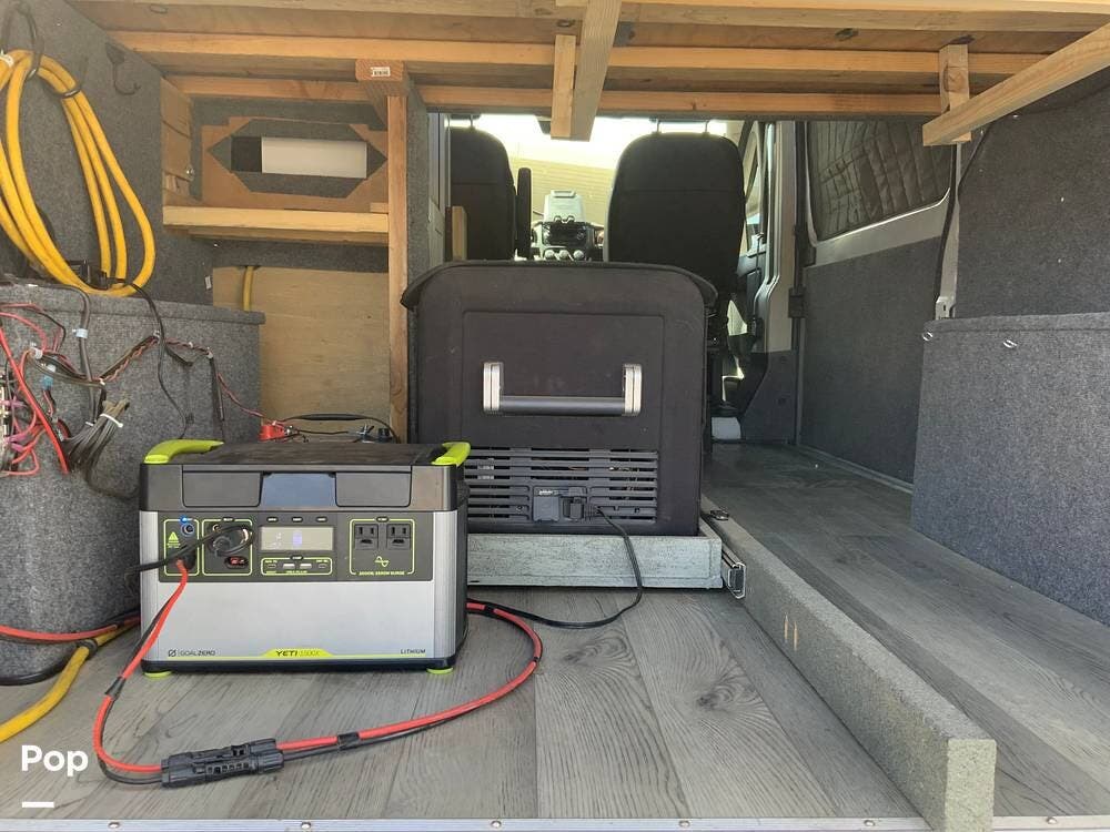 This 2019 Ram ProMaster camper van conversion is designed to provide flexibility for both off-grid travel and campground use. The van is equipped with a Goal Zero Yeti 1500X lithium power system supported by roof-mounted solar panels and an auxiliary battery, allowing for off-grid capability. A 30-amp exterior shore power connection is also installed, providing the ability to plug into campground power when available. In addition, a Predator 3500 portable inverter generator is included for backup power.
