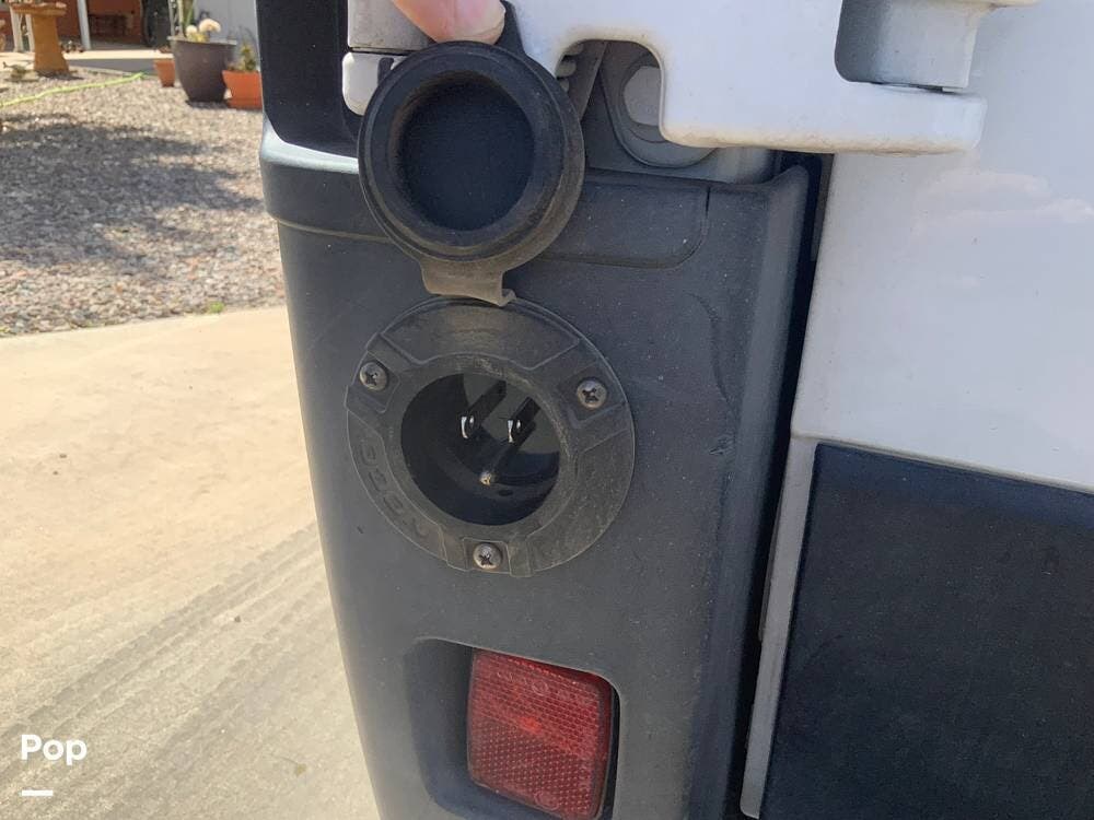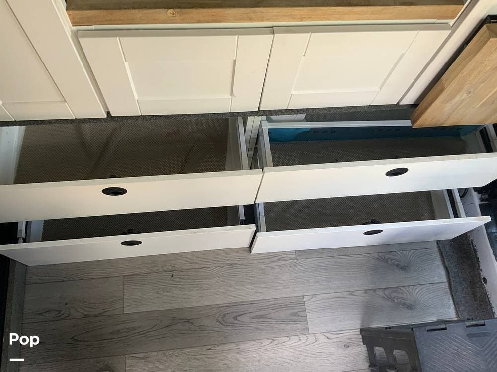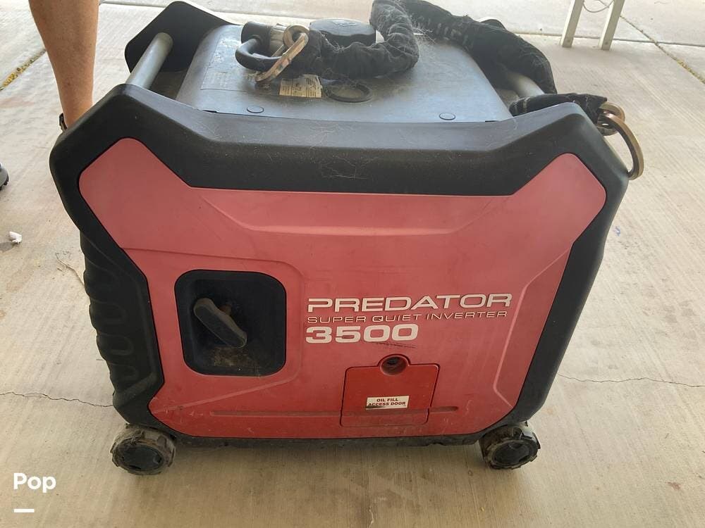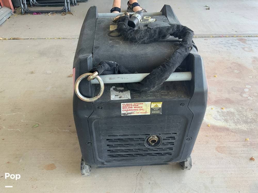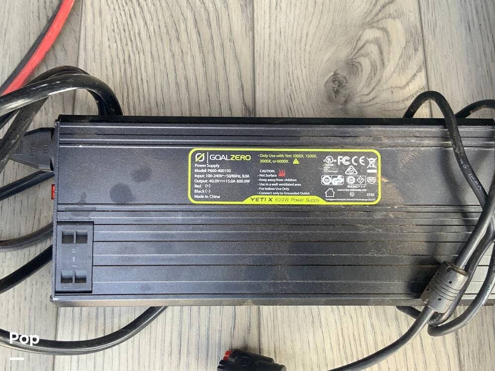 This 2019 Ram ProMaster camper van conversion is designed to provide flexibility for both off-grid travel and campground use. The van is equipped with a Goal Zero Yeti 1500X lithium power system supported by roof-mounted solar panels and an auxiliary battery, allowing for off-grid capability. A 30-amp exterior shore power connection is also installed, providing the ability to plug into campground power when available. In addition, a Predator 3500 portable inverter generator is included for backup power.