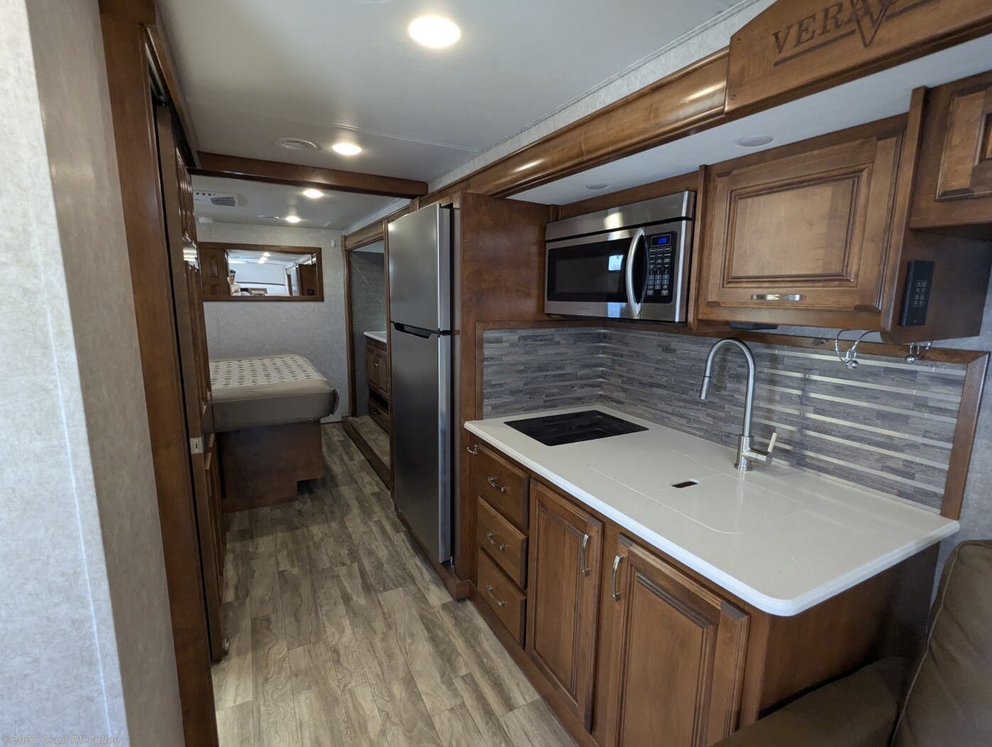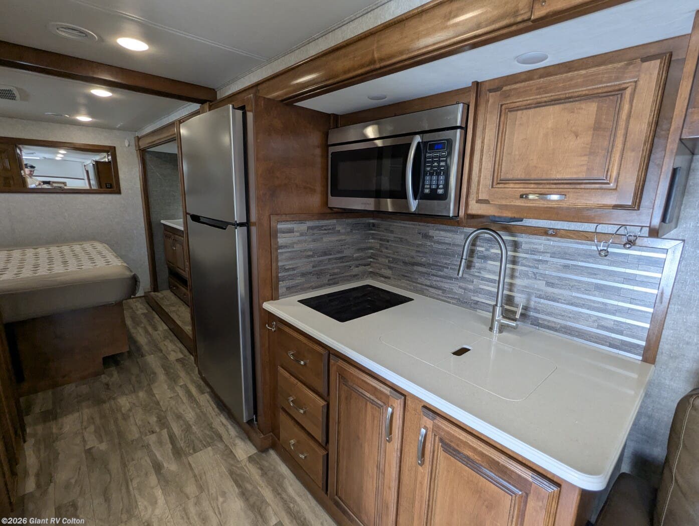 - Modern Kitchen: Equipped with a residential refrigerator, 3-burner cooktop, convection microwave, and stainless steel sink with ample storage.