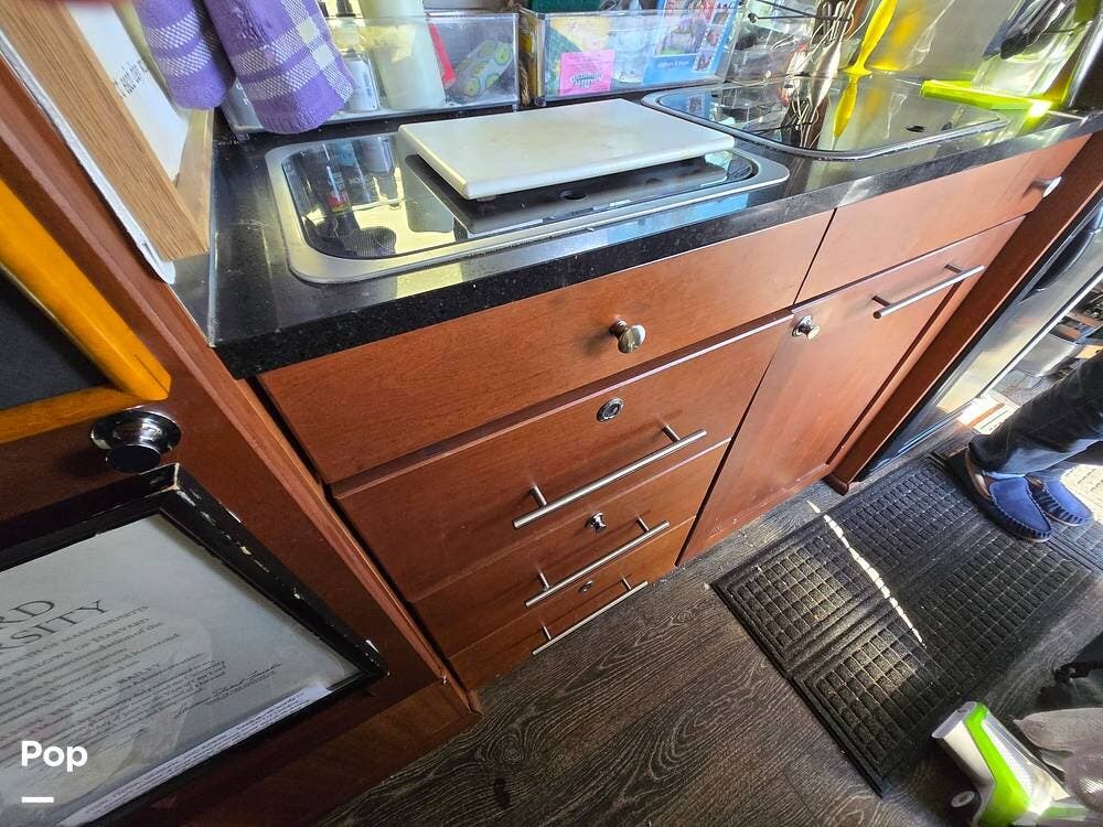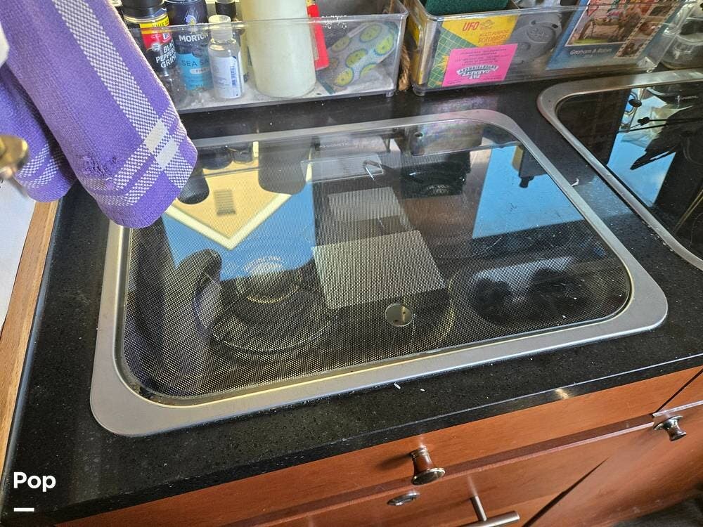 The rooftop solar panels, integrated pair of alternators, and power inverter provide power to operate all the systems without using an onboard generator. Enjoy watching a movie in the air conditioning while sitting on the large wraparound couch, which can also be converted to a Queen-size bed! The heated floors provide a nice level of comfort in colder weather.
