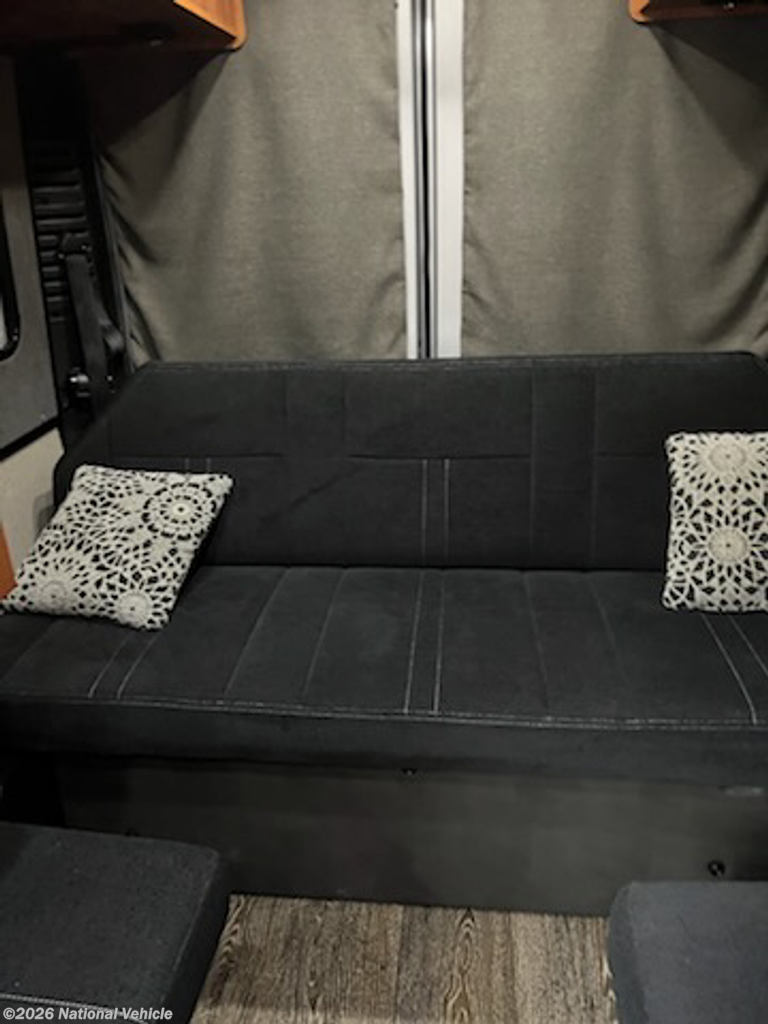 The fully equipped galley includes a two-burner cooktop, microwave, refrigerator, and sink?providing all the essentials for preparing meals on the road. A well-designed wet bath with a shower, toilet, and vanity maximizes functionality in the compact layout, giving you convenience and privacy without taking up unnecessary space.