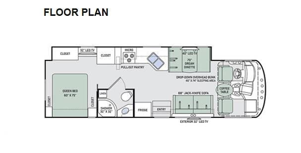 If you are in the market for a class a, look no further than this 2019 Freedom Traveler A30, just reduced to $54,900.00. Non-smoking and pet-free. This Class A is located in Mansfield, Texas and is in good condition. She is also equipped with a Ford engine that has 45,000 miles.