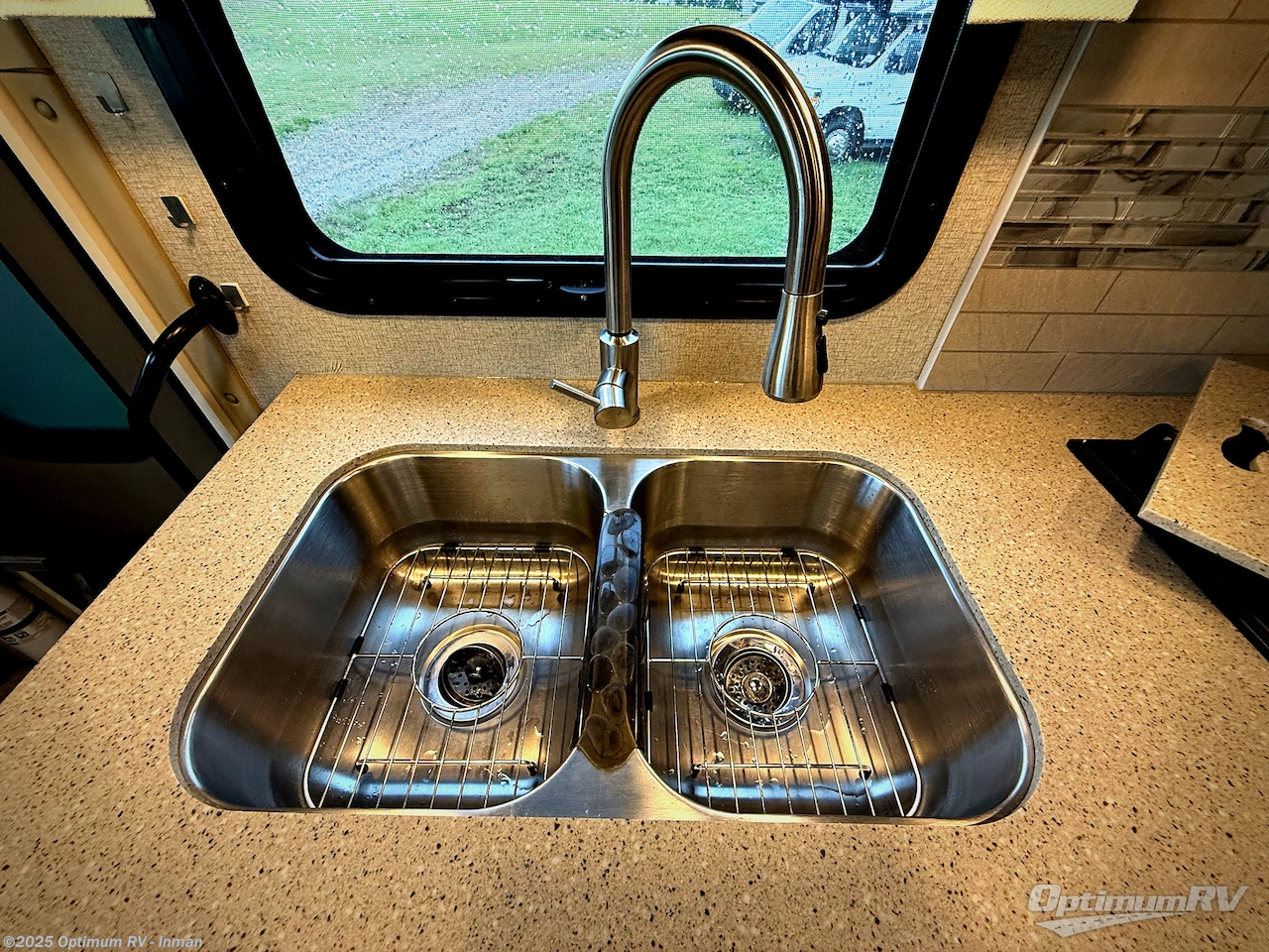 Have you been dreaming about traveling to see new places on your "bucket list"? No more dreaming, this Hurricane provides convenience, comfort and six seatbelts as well as sleeping space for six. You can invite the grandkids or your RV friends to enjoy all the amenities where ever your go. Just imagine traveling down the road in captain's chairs that also swivel to provide more living room seating. The L-shaped expanding sofa bed allows you to view the TV and visit with the cook in the full kitchen. You can stock up on cold items and dry goods thanks to the residential refrigerator and the pantry. You even have the option to add a stackable washer and dryer to keep everything clean. The rear full bathroom can be all yours while your guests use the half bath. Come see how your traveling lifestyle will work perfectly in this coach.