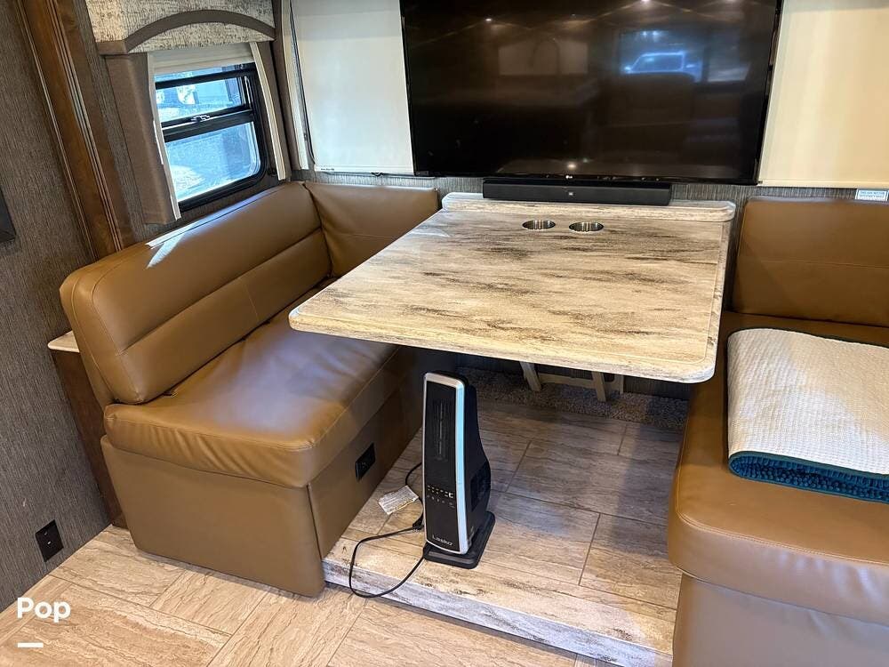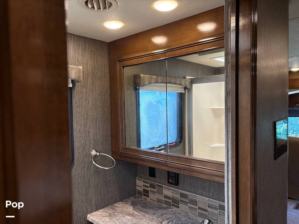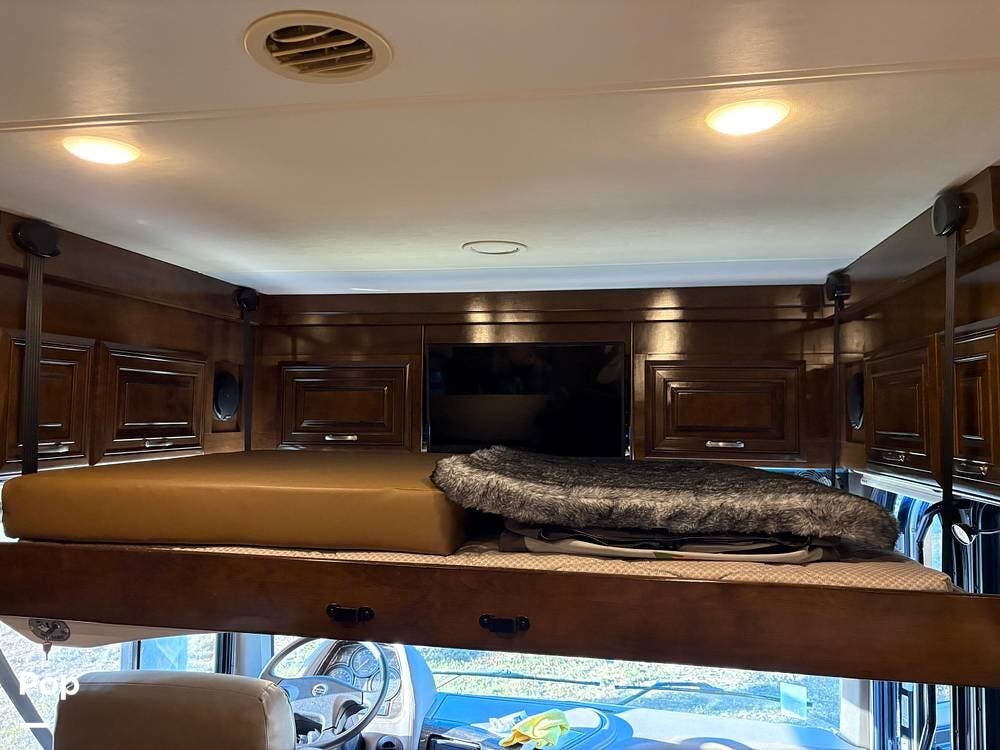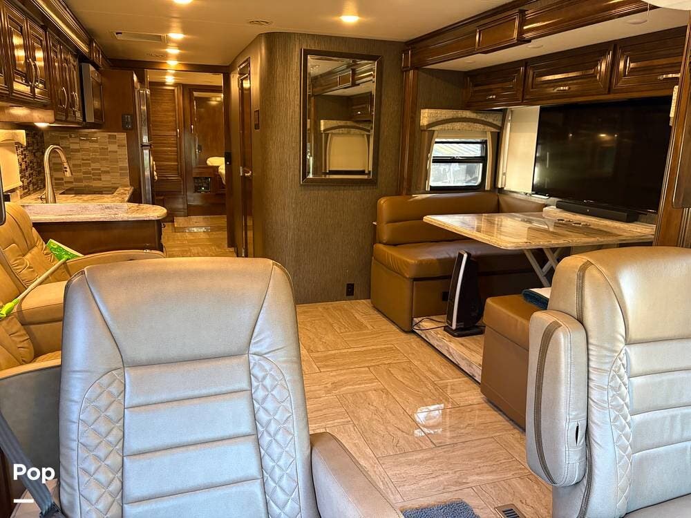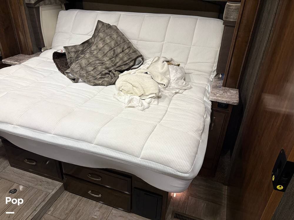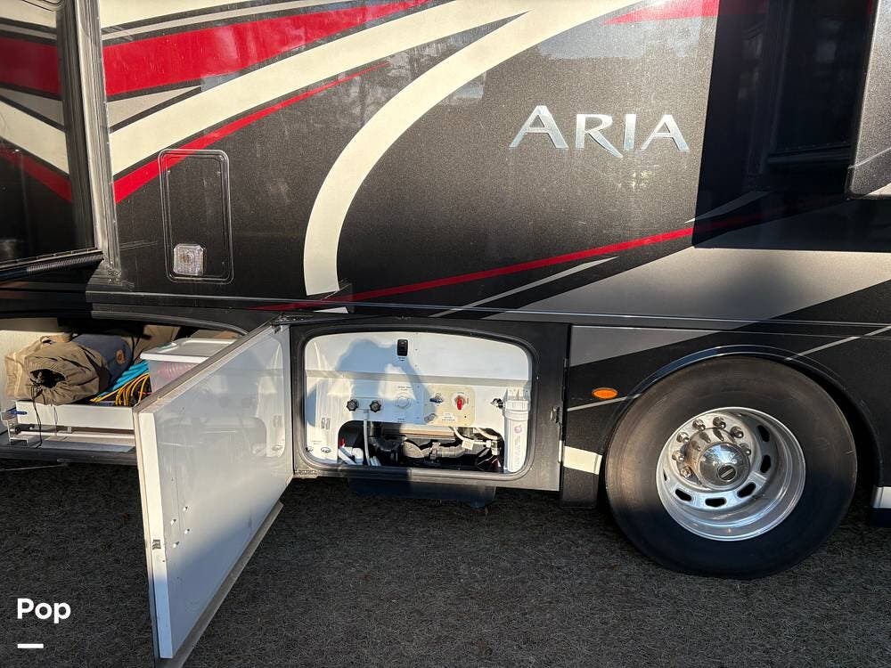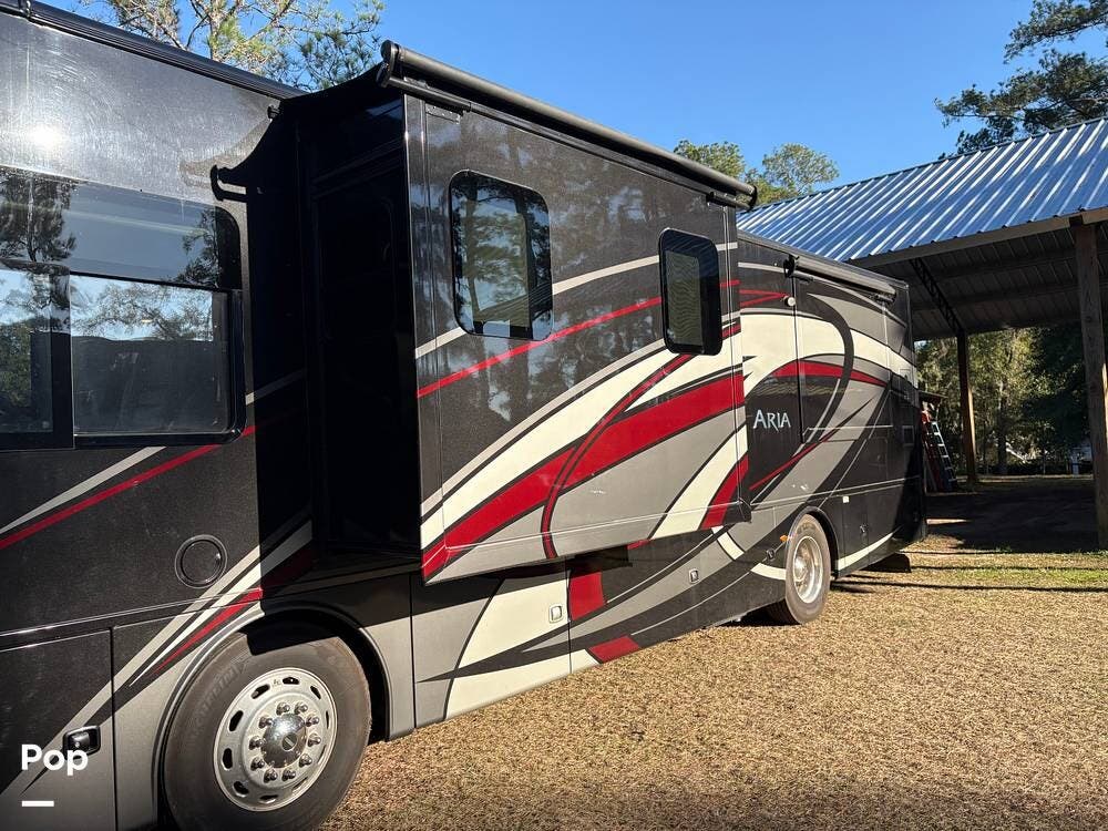 This 2019 Aria 3401 is powered by a Cummins ISB 6.7L engine delivering 360 hp. This diesel pusher has low mileage and is road-ready!