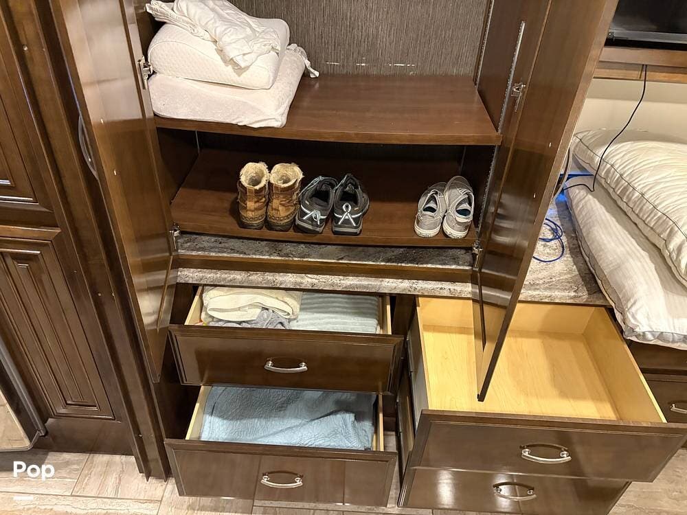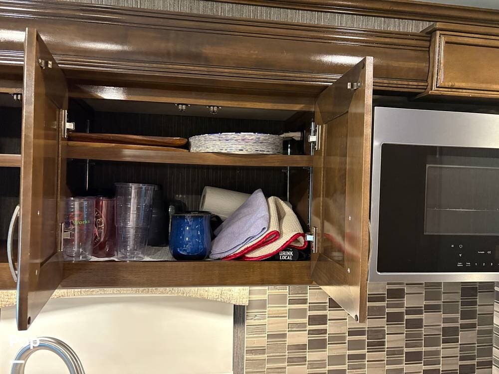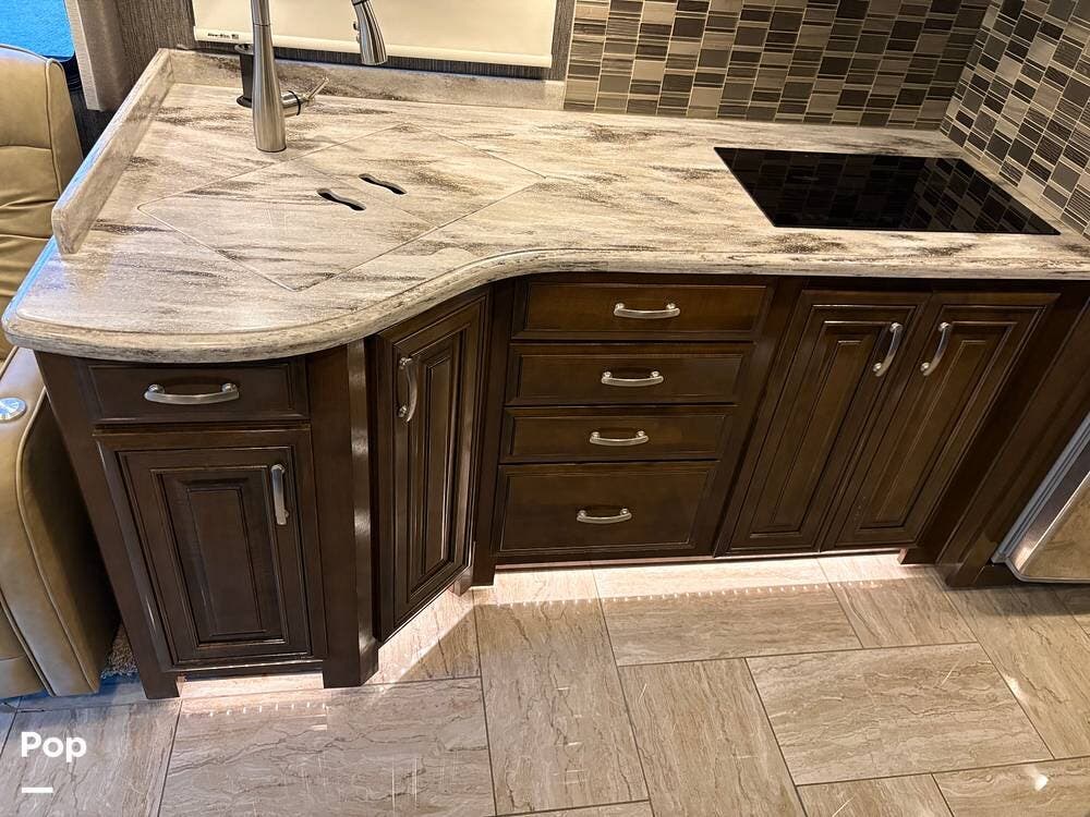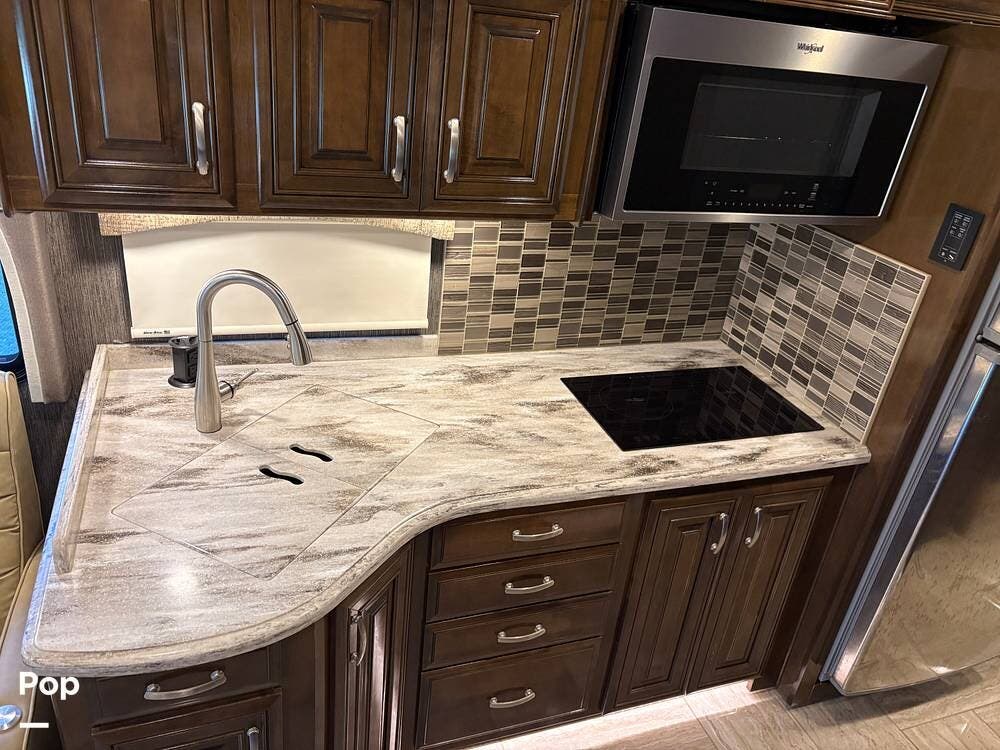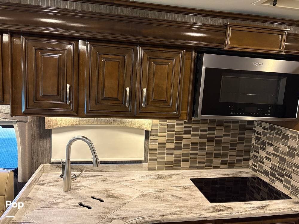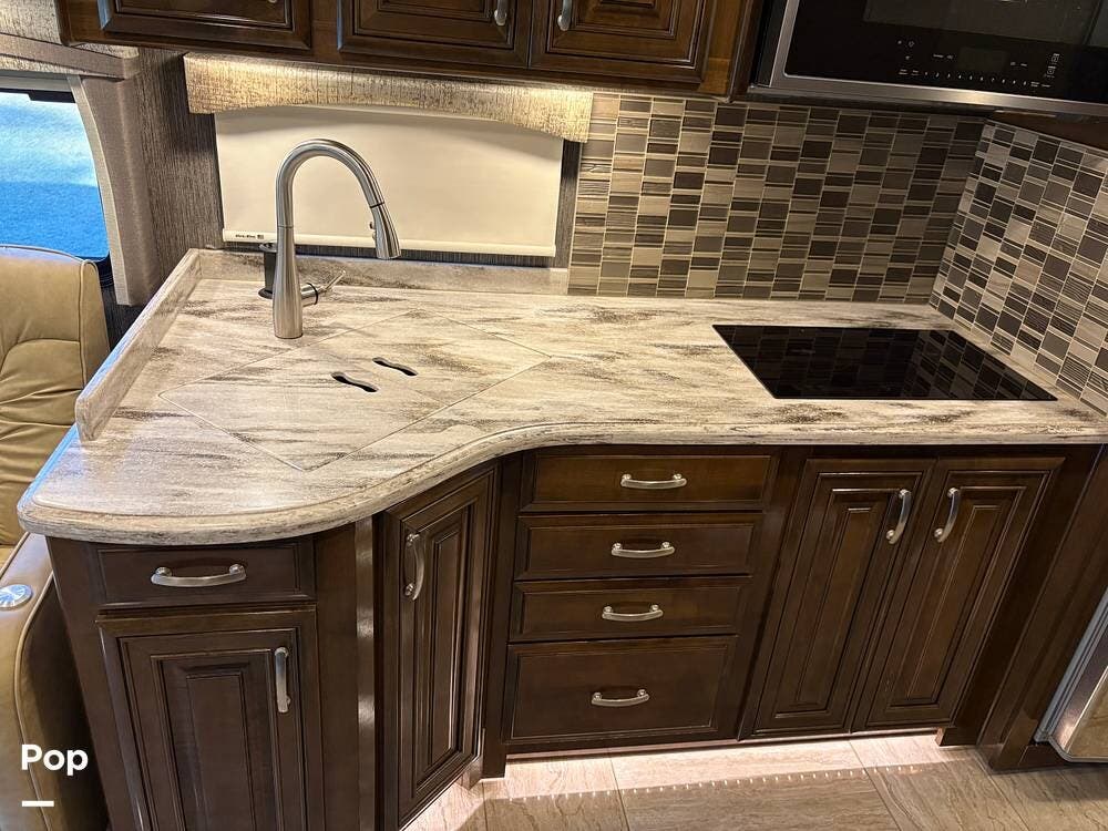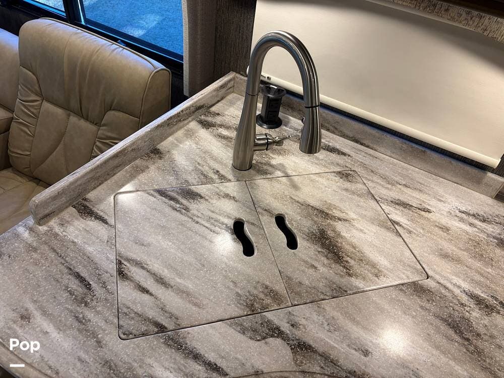 This 2019 Aria 3401 is powered by a Cummins ISB 6.7L engine delivering 360 hp. This diesel pusher has low mileage and is road-ready!