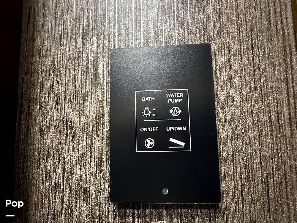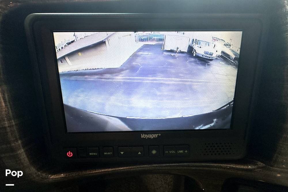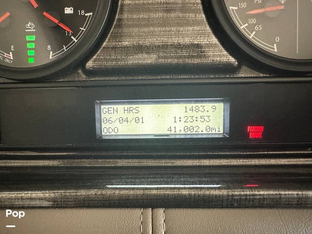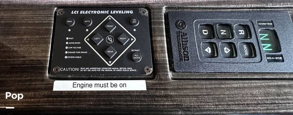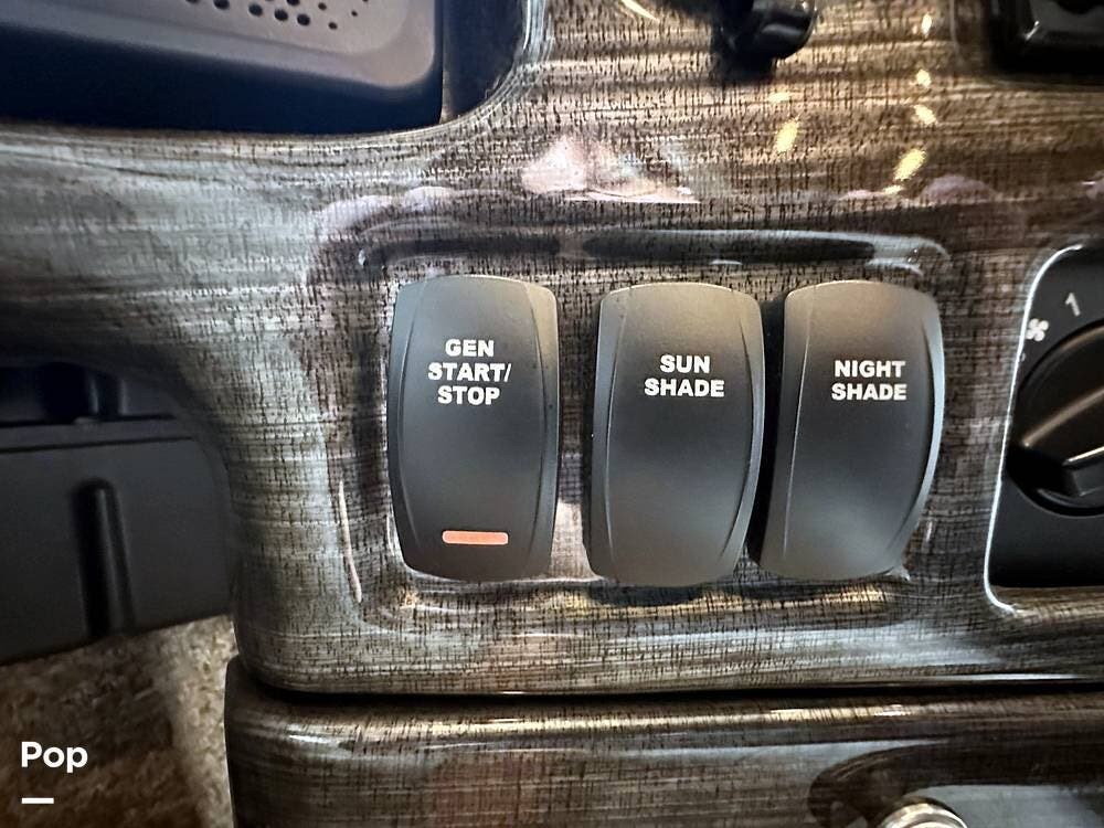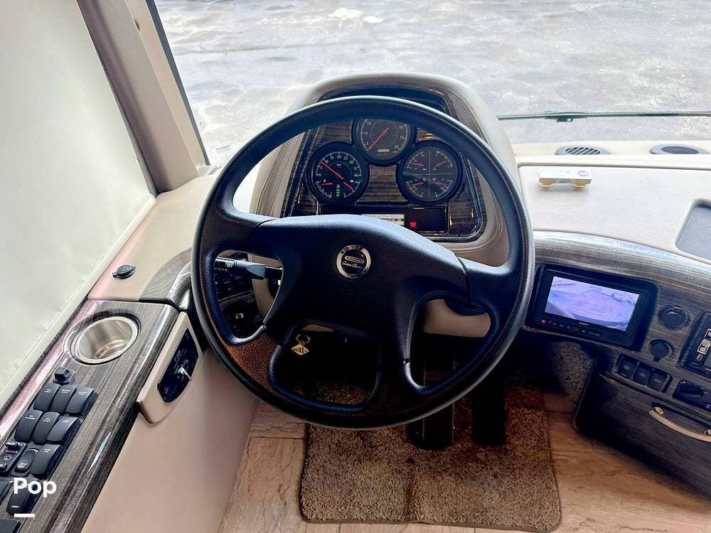The Cockpit boasts a Tilt/Telescoping Steering Column with cruise control, Automatic Leveling Jacks with Touchpad Controls, an emergency engine start switch, map lights, dash fans, air horns, fog lights, and Leatherette reclining/swivel power-adjustable captain's Chairs. The passenger Captain's Chair has an electric footrest.