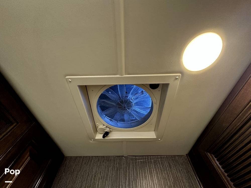 For additional guests, there is a power drop-down hide-away overhead bunk over the cockpit with a Cotton Cloud Mattress and a 32" LED HDTV for entertainment. The sofa and the dinette also convert for sleeping accommodations.