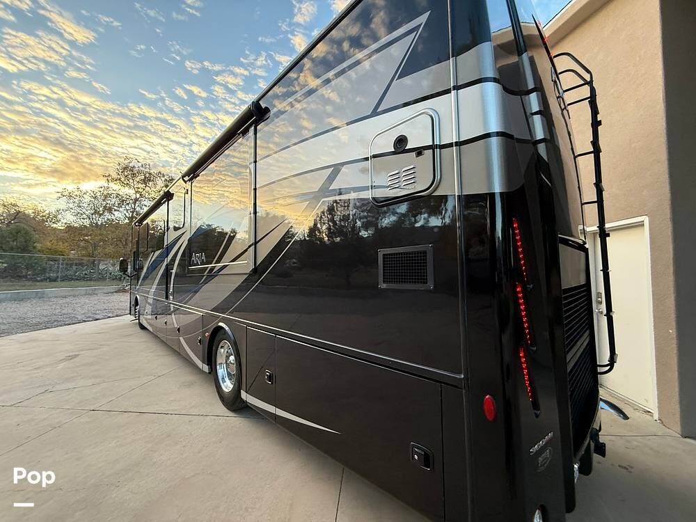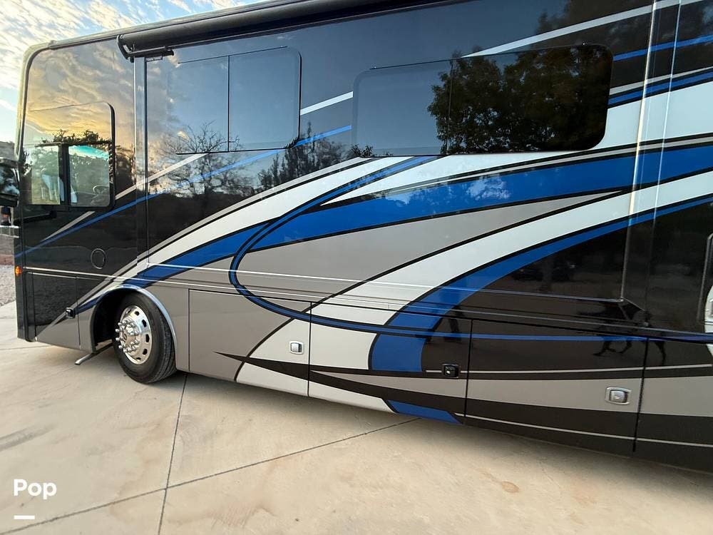 Luxury, power, and elegance meet in this indoor-kept 2019 Thor Aria 3901 Class A diesel pusher. Turn every journey into first-class travel!