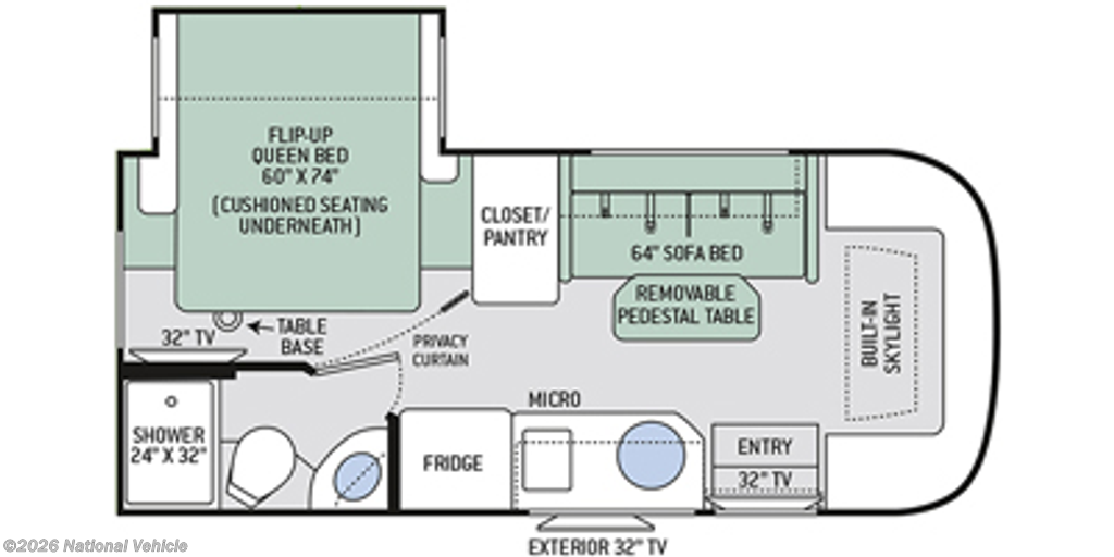 The versatile twin-bed layout converts into a spacious queen bed, giving you flexibility and comfort to suit your travel style. The rear bathroom is surprisingly roomy for a coach this size, featuring a full shower, vanity, and storage options for extended trips. Climate control, quality insulation, and efficient systems ensure you stay comfortable wherever you travel.