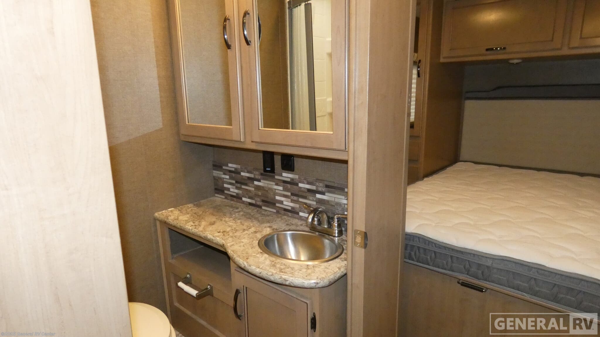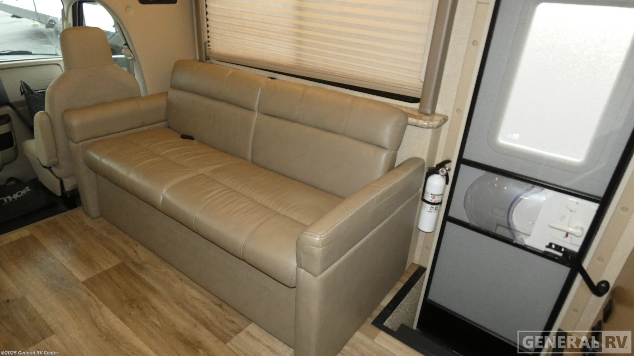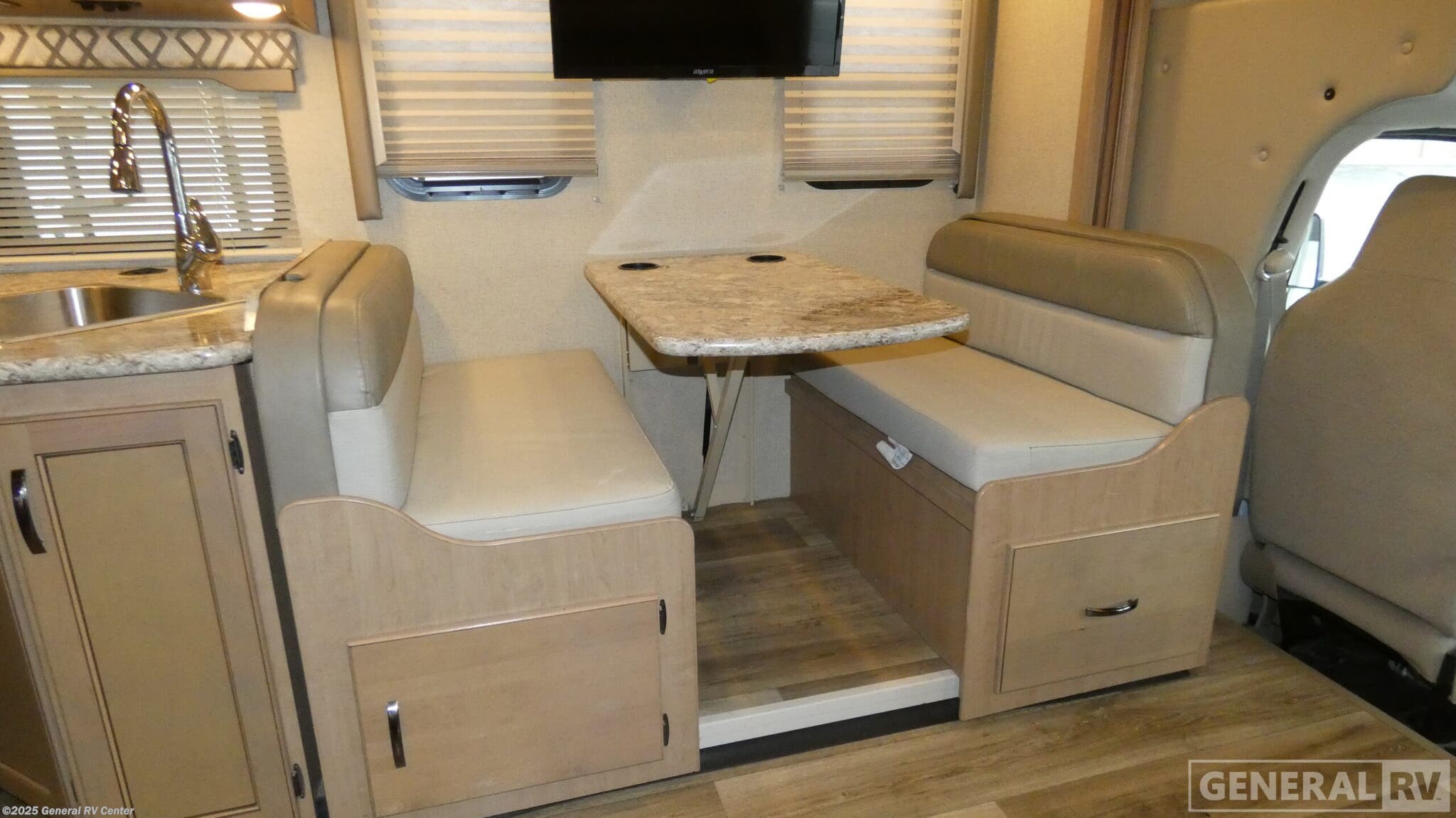 Step into the world of adventure with the 2019 Thor Motor Coach Four Winds 28Z. This versatile RV is designed to accommodate up to eight travelers comfortably, making it the perfect companion for family trips or a getaway with friends. The spacious interior boasts a center kitchen equipped with a three-burner cooktop and a mid-size refrigerator, ensuring you have all the conveniences of home on the road. The front living area features a cozy jack-knife sofa and a dream dinette, both of which convert into sleeping spaces, providing flexibility and comfort for your journey. The rear bedroom offers a serene retreat with a queen bed and ample closet space, ideal for unwinding after a day of exploration. The cab-over bunk adds an extra sleeping area, making this RV a true haven for rest. With a powered retractable 14 ft. awning, you can enjoy the outdoors in style, whether you're parked lakeside or at your favorite campsite. Built on a robust Ford E450 chassis and powered by a Triton V10 engine, the Four Winds 28Z promises a smooth and powerful ride, ready to take you wherever your heart desires. For more details or to experience this RV firsthand, visit your nearest General RV dealership.