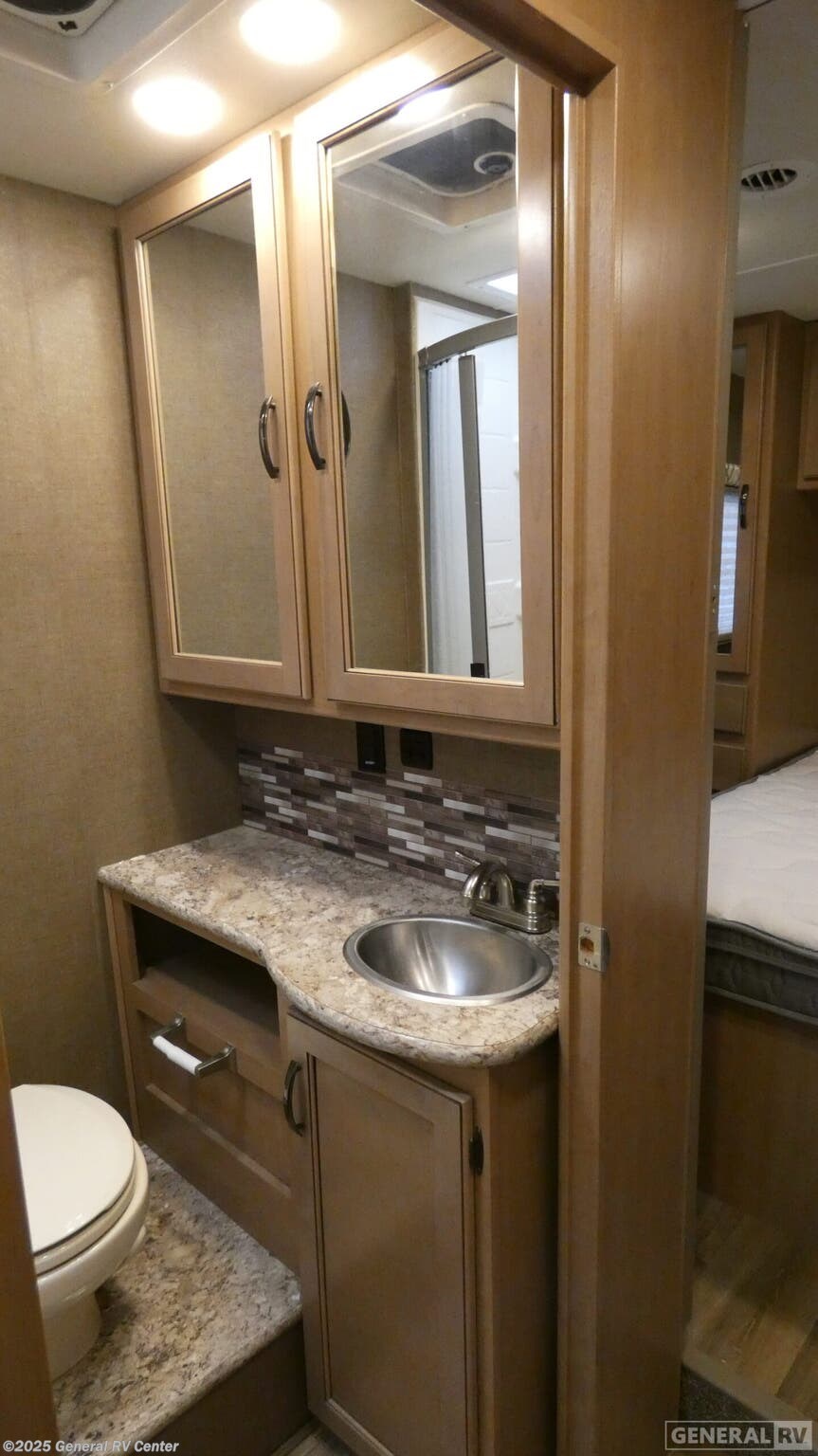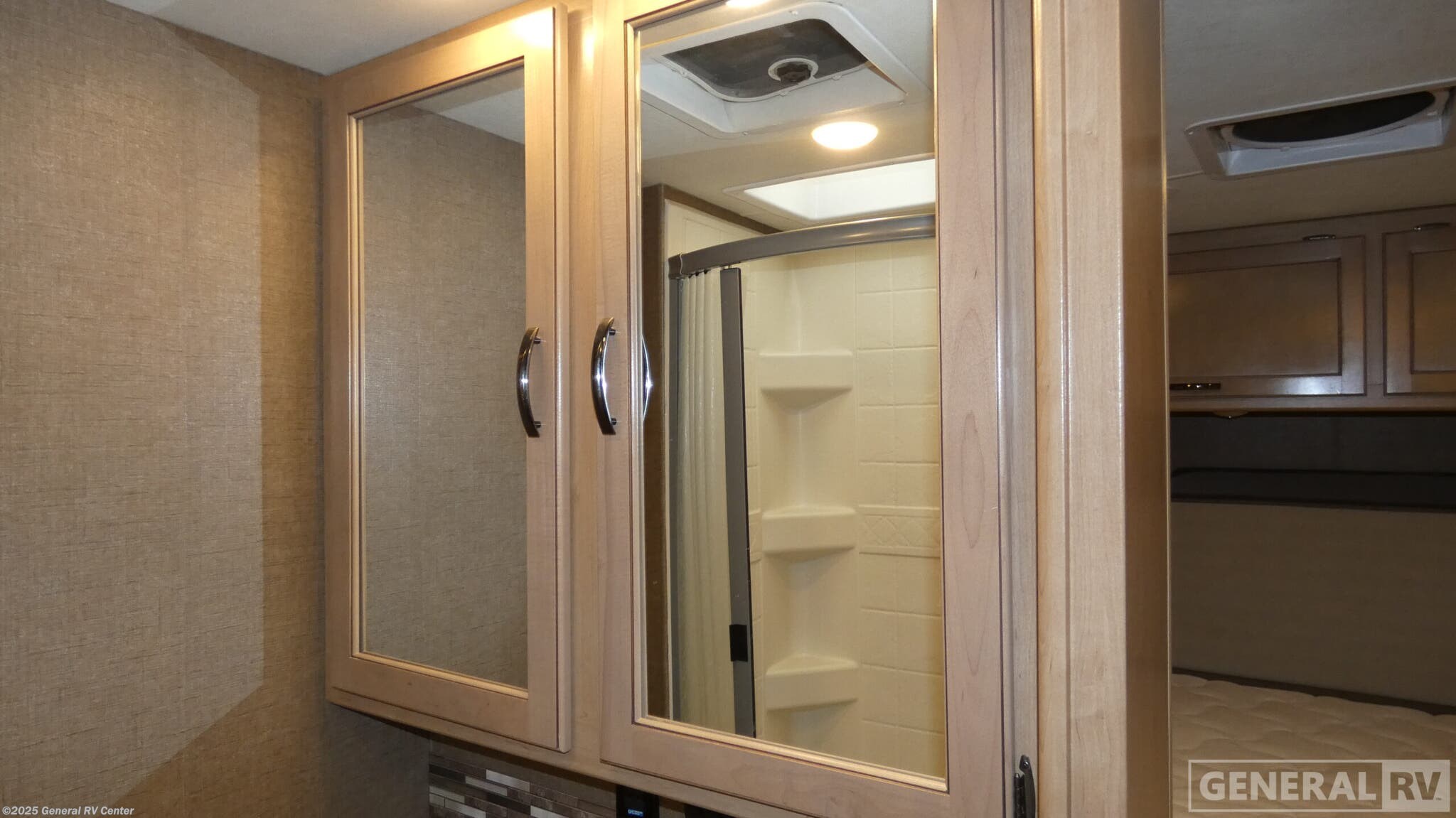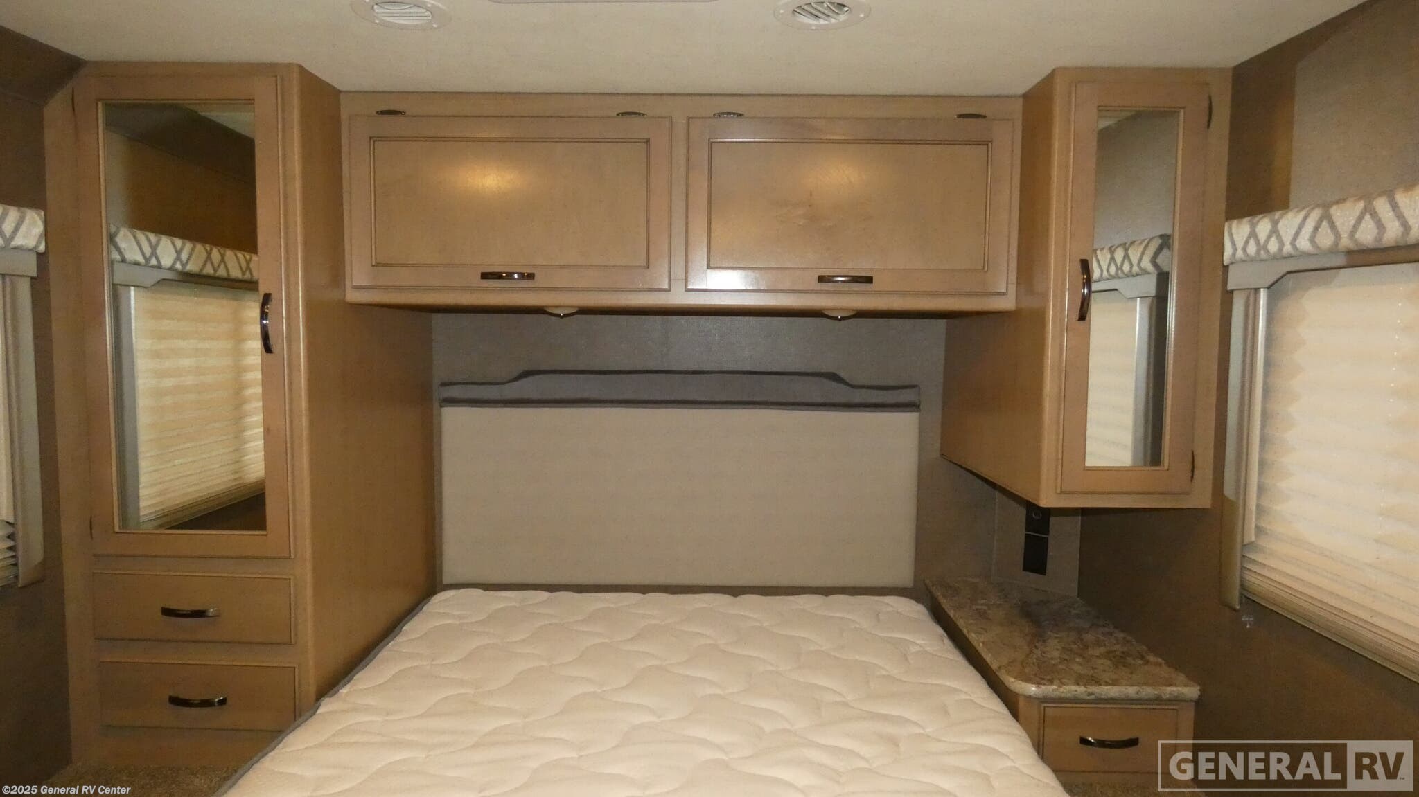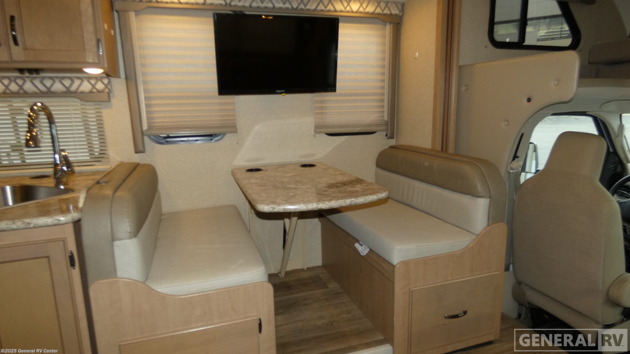 Step into the world of adventure with the 2019 Thor Motor Coach Four Winds 28Z. This versatile RV is designed to accommodate up to eight travelers comfortably, making it the perfect companion for family trips or a getaway with friends. The spacious interior boasts a center kitchen equipped with a three-burner cooktop and a mid-size refrigerator, ensuring you have all the conveniences of home on the road. The front living area features a cozy jack-knife sofa and a dream dinette, both of which convert into sleeping spaces, providing flexibility and comfort for your journey. The rear bedroom offers a serene retreat with a queen bed and ample closet space, ideal for unwinding after a day of exploration. The cab-over bunk adds an extra sleeping area, making this RV a true haven for rest. With a powered retractable 14 ft. awning, you can enjoy the outdoors in style, whether you're parked lakeside or at your favorite campsite. Built on a robust Ford E450 chassis and powered by a Triton V10 engine, the Four Winds 28Z promises a smooth and powerful ride, ready to take you wherever your heart desires. For more details or to experience this RV firsthand, visit your nearest General RV dealership.