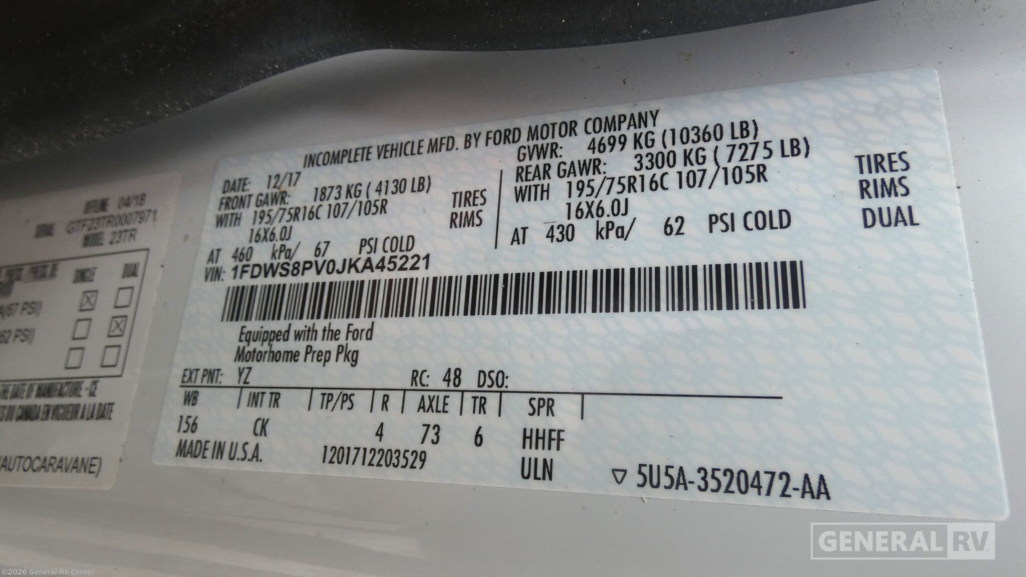 - VIN1FDWS8PV0JKA45221