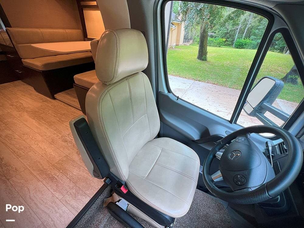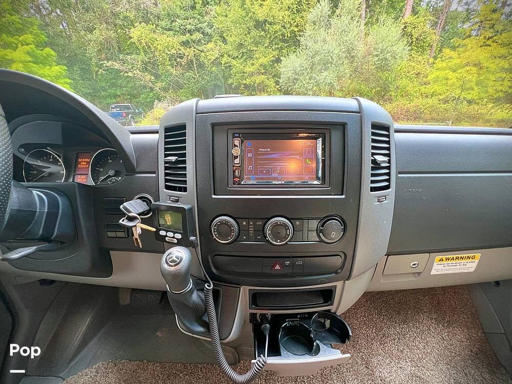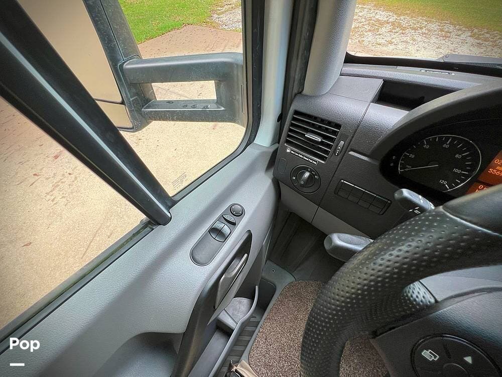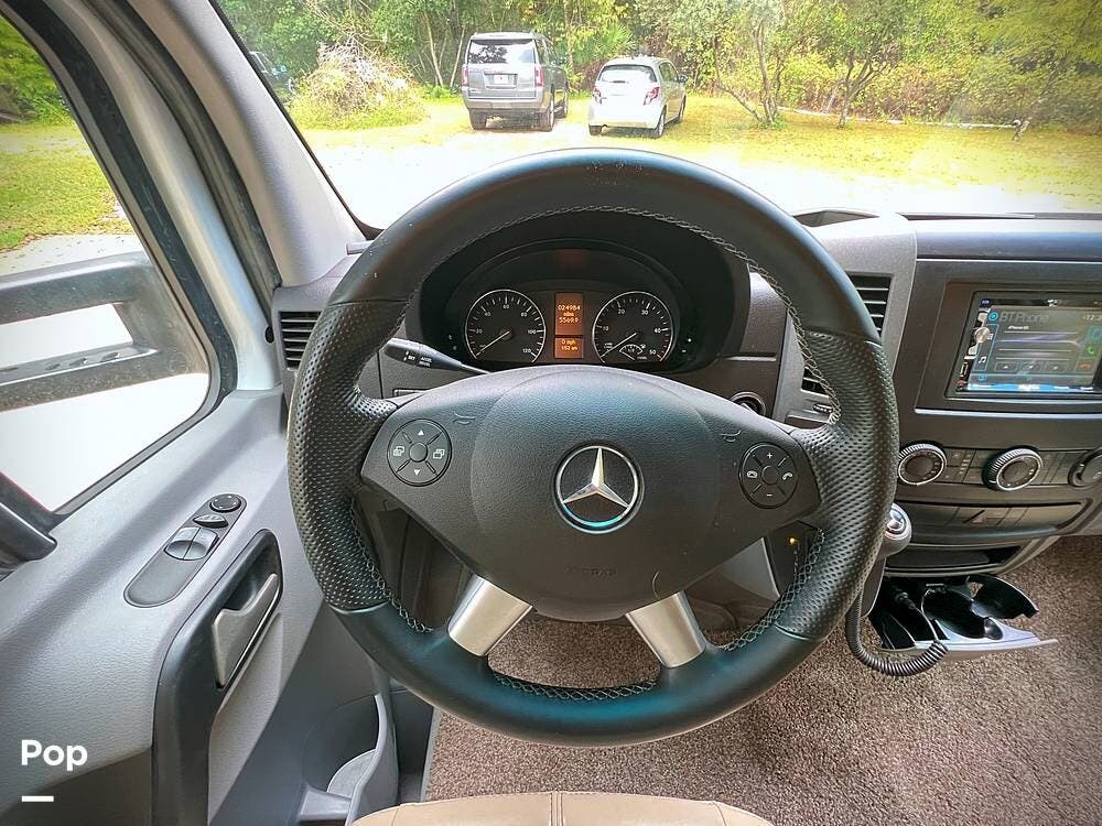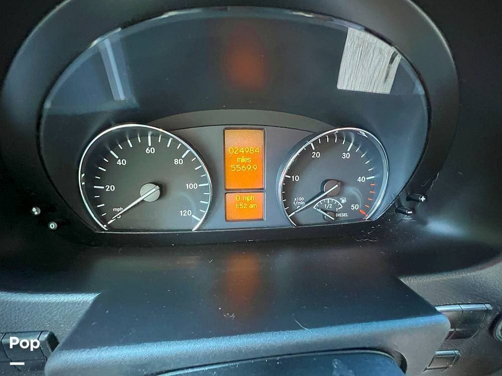 Behind the wheel, you immediately feel the refinement of the Mercedes platform. The cockpit is equipped with supportive captain's chairs that swivel to face the living space, and the dash features a modern infotainment system with navigation, touchscreen controls, and a backup camera, making long drives both safe and enjoyable.