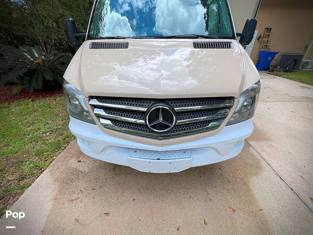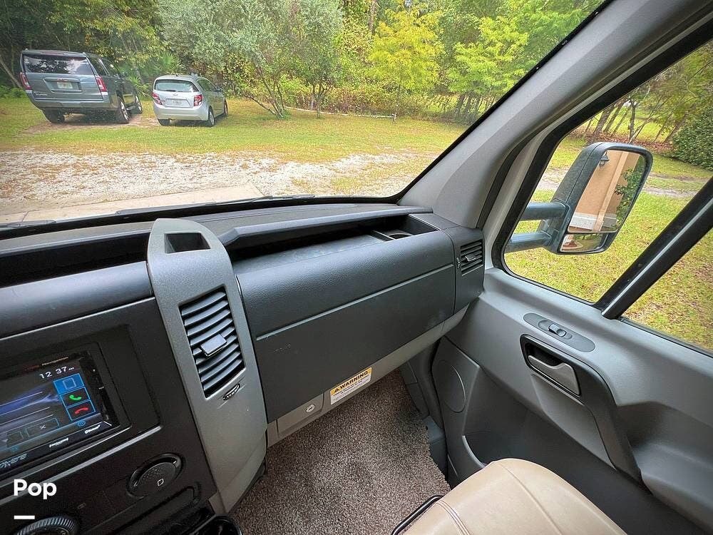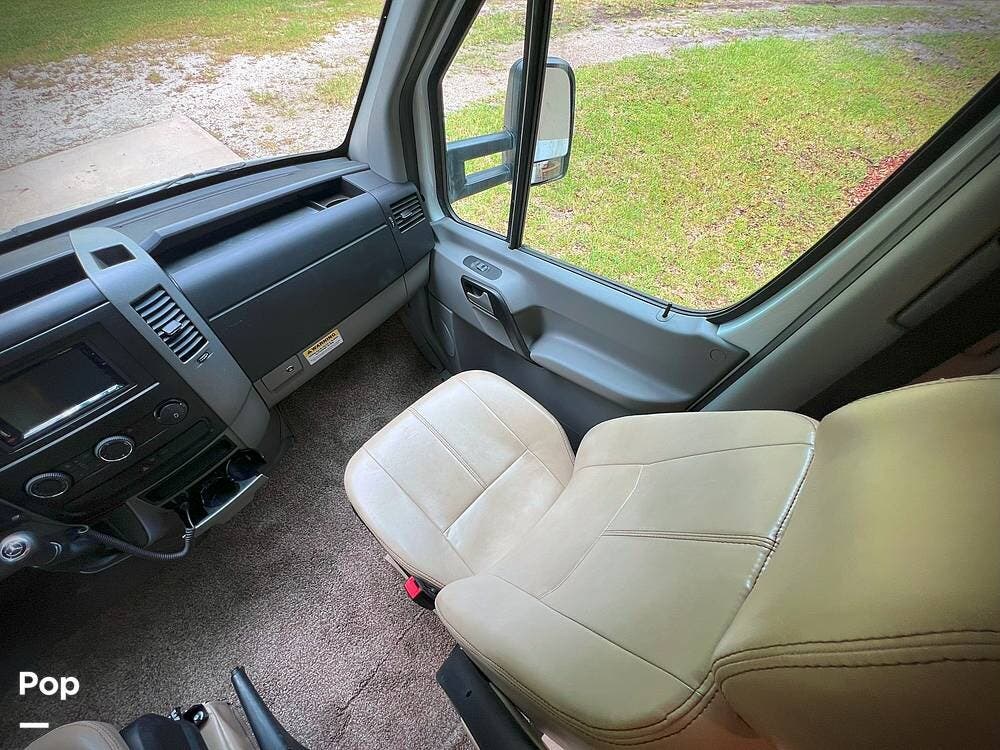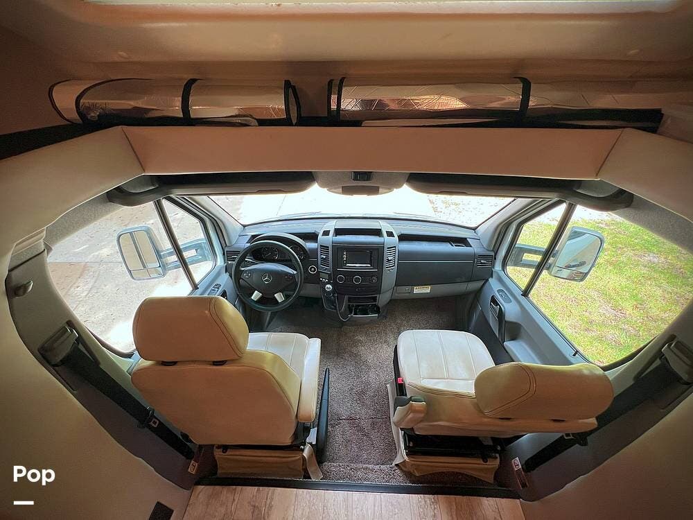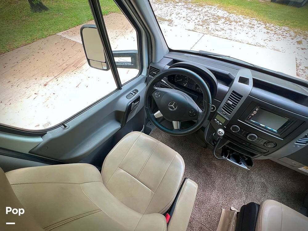 Behind the wheel, you immediately feel the refinement of the Mercedes platform. The cockpit is equipped with supportive captain's chairs that swivel to face the living space, and the dash features a modern infotainment system with navigation, touchscreen controls, and a backup camera, making long drives both safe and enjoyable.