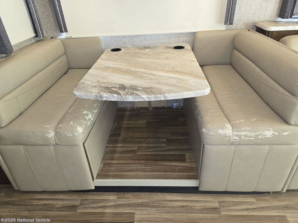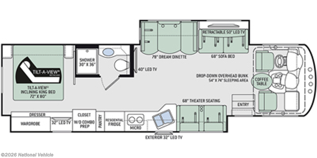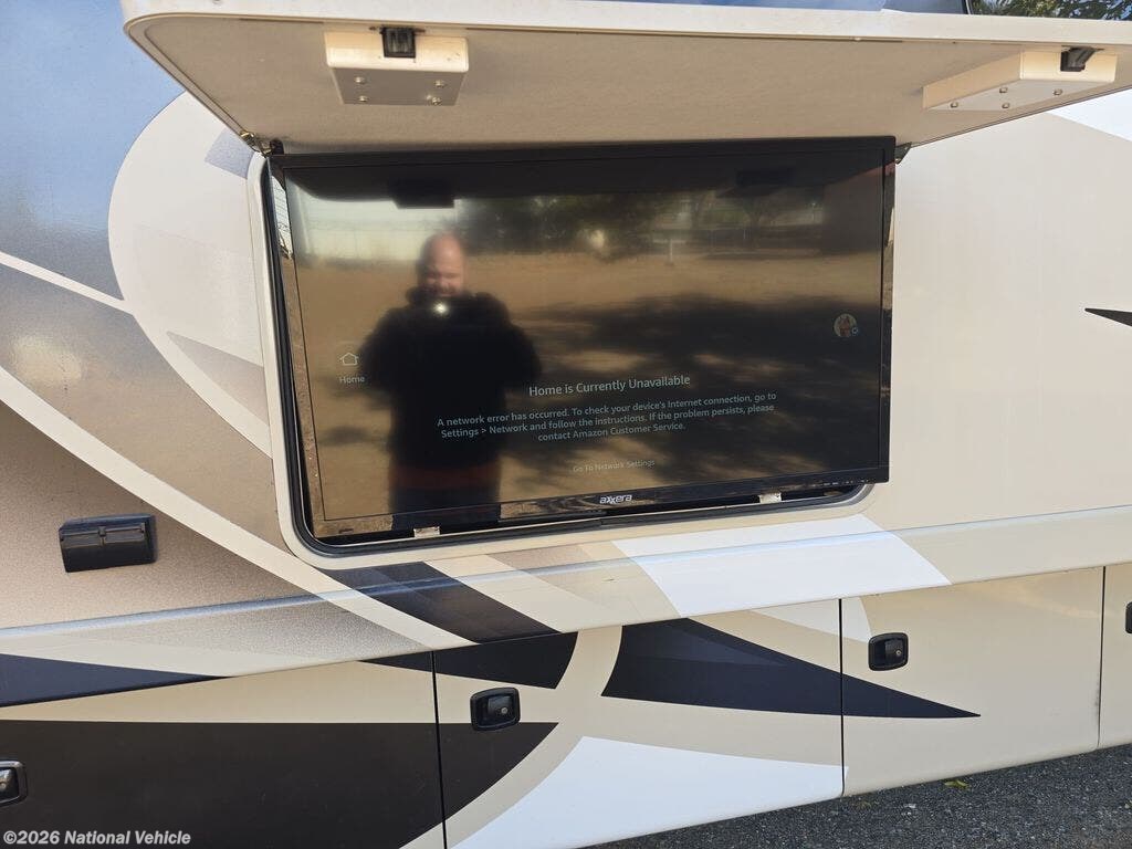 Make yourself at home in this double slide out coach! When you arrive at your destination, set up the the 20' power awning with LED lights and enjoy the 39" exterior TV. You can prepare lunch on the two burner single induction cooktop, or use the stainless steel convection microwave, and there is a Dream Dinette to dine at. You'll also find a sofa sleeper across from the retractable 49" LED TV to watch your favorite shows. You're going to love the rear bedroom with its king bed that will allow you to read a book in bed, plus there is a 32" TV and a closet to store your belongings. And this coach wouldn't be complete without stackable washer and dryer prep!