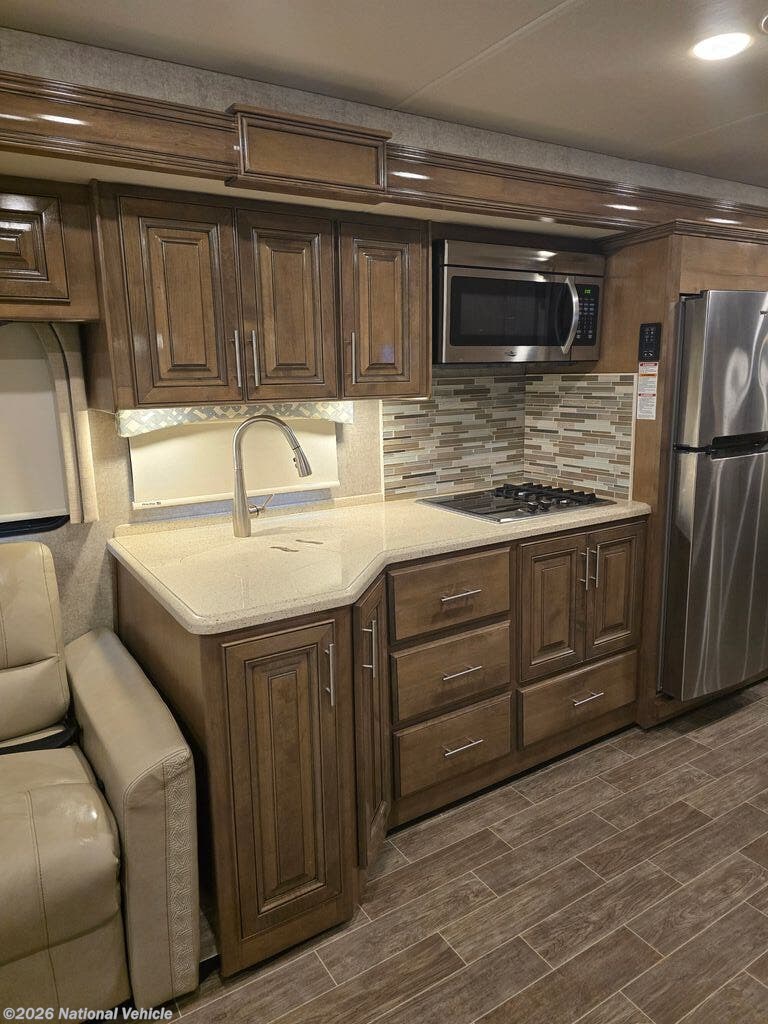Built for comfort and convenience, this coach includes features like a generator, leveling jacks, backup and side-view cameras, and a power awning with LED lighting. With large holding tanks and thoughtful design throughout, it?s well-suited for extended travel.
