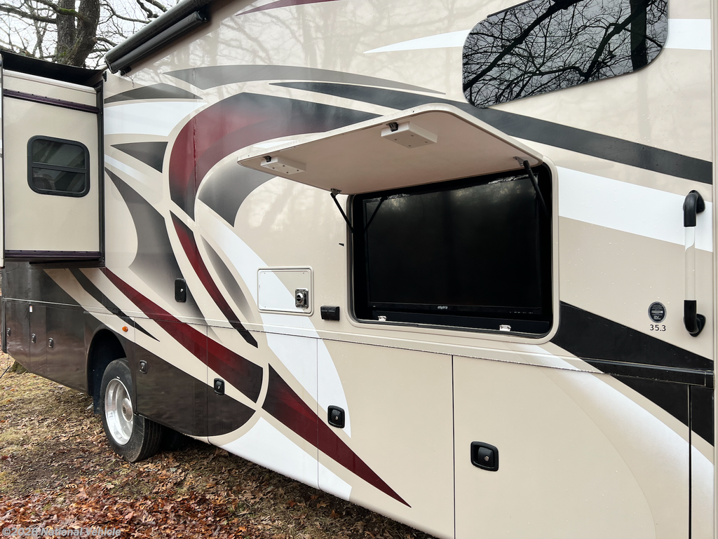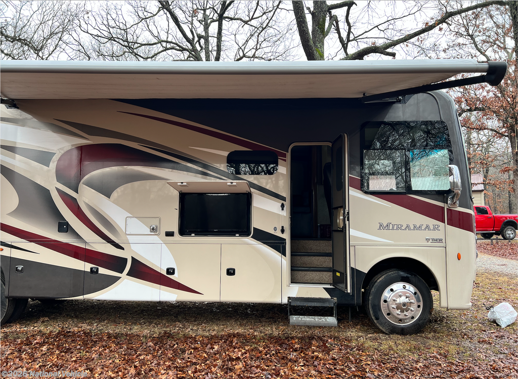 2019 Thor Motor Coach Miramar 35.3 37' Class A Motorhome. Ford V10 Gasoline Engine, Ford 22 Series Chassis, 2 Slide Outs, Awning, Sleeps 6, Dual A/C Units, Bath & 1/2, Automatic Leveling System with Touch Pad Controls.