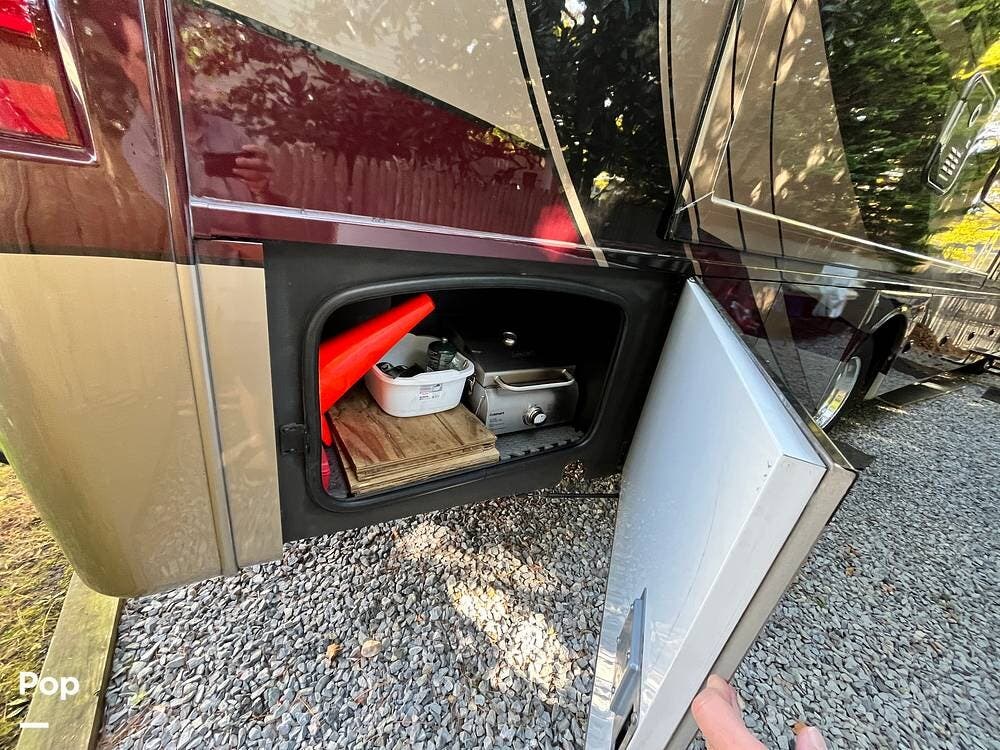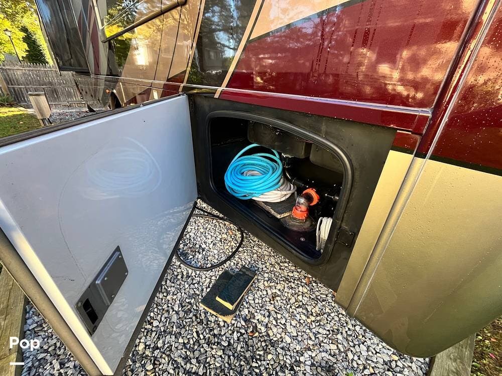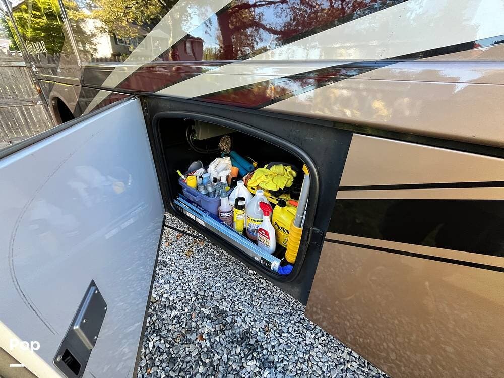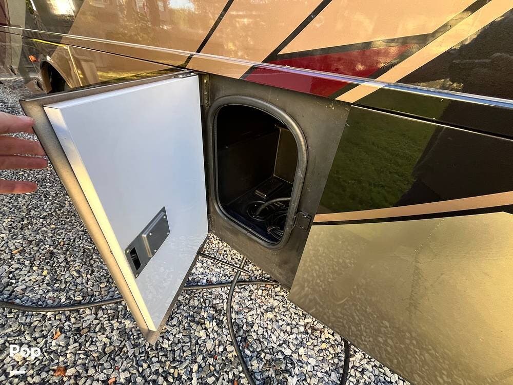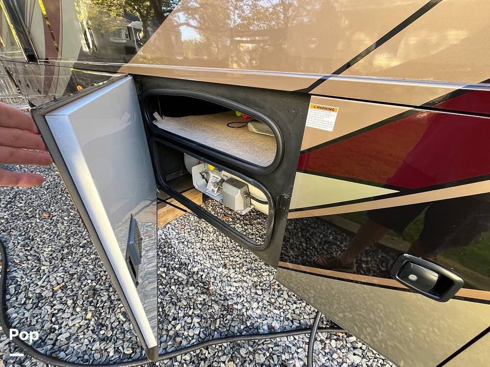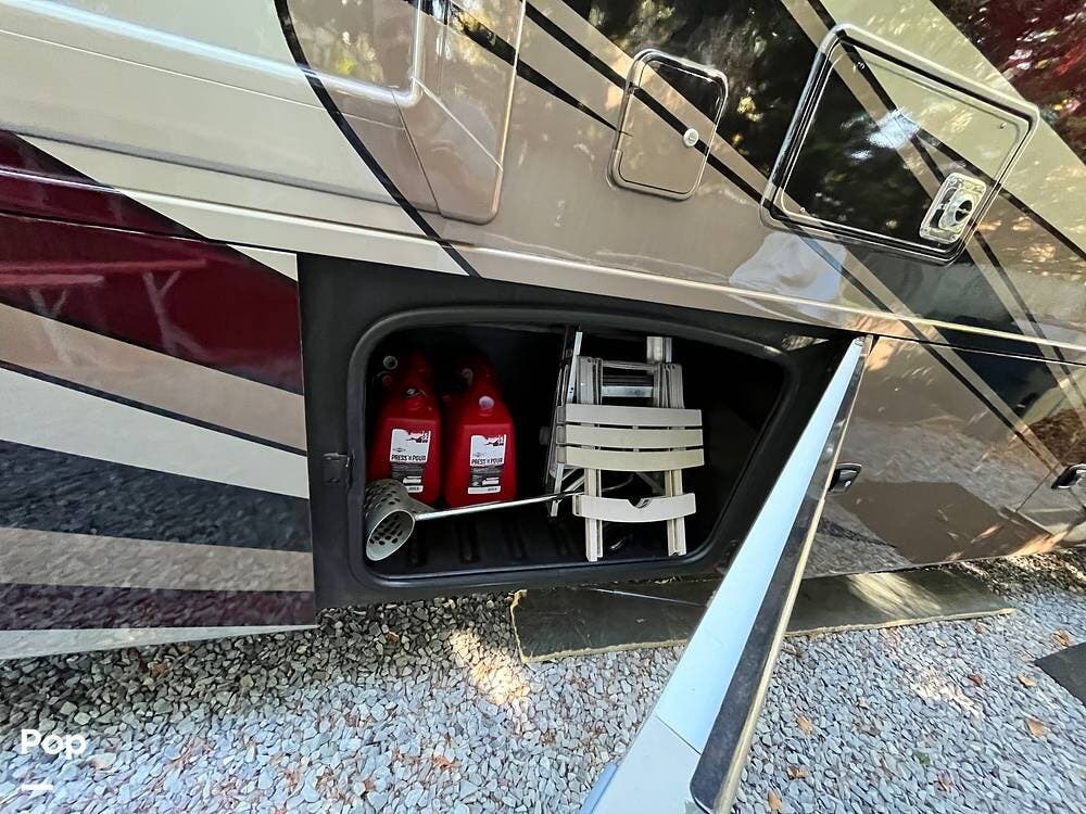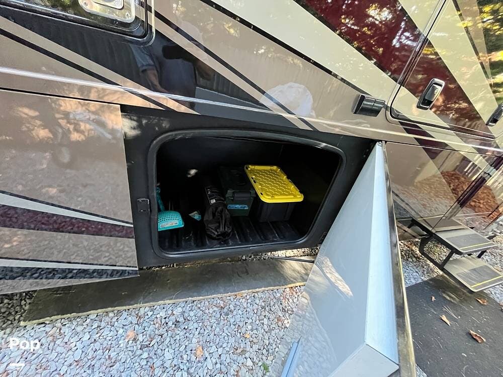 Step outside and you'll find just as many impressive features -- full pass-through basement storage, an automatic leveling system, a power awning, and an exterior entertainment center for outdoor movie nights or tailgates. Plus, the 8,000 lb hitch receiver gives you the freedom to bring your toys along for the ride.