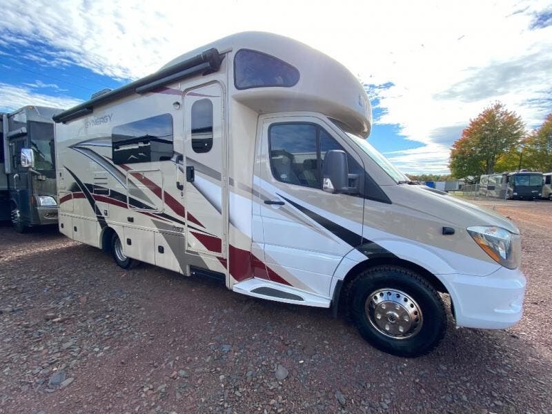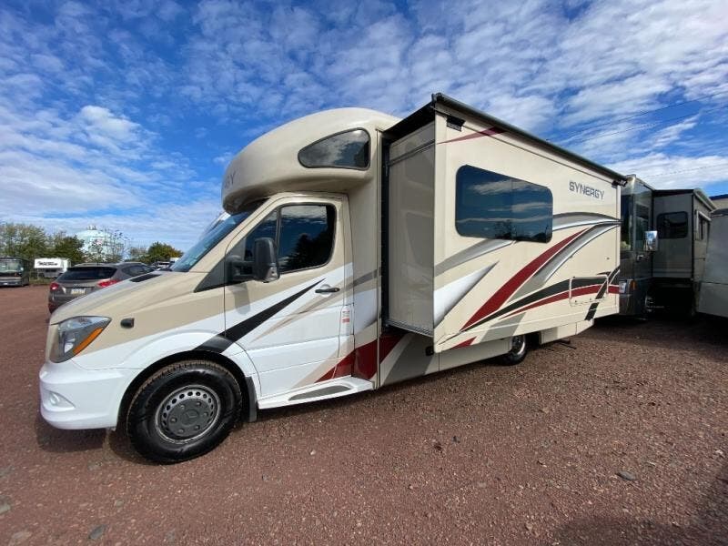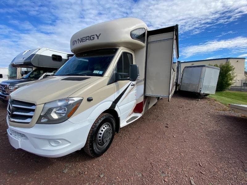 Prepare to be impressed by this Thor Motor Coach Synergry Sprinter motorhome which features a large driver's side slide! You will love the convenience of the Murphy bed's ability to transform from a bed into a sofa for added seating throughout the day. After you have prepared your best meal in the kitchen with all of the standard amenities provided, like a double-door refrigerator for your perishables, a two-burner cooktop, a convection microwave oven, and a handy flip-up countertop, you can comfortably enjoy that meal while seated at the Dream dinette. You will also appreciate the added privacy when it's time to clean up or get ready for your day with a full rear bath which has a closet for you to keep all of your linens handy.