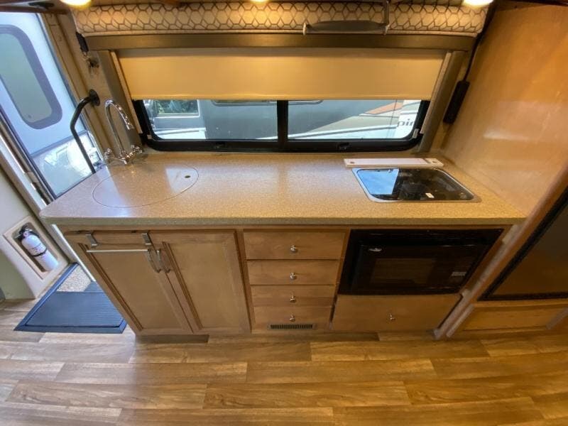 In any Synergy Sprinter Class C diesel motorhome by Thor Motor Coach, you will find a coach that is made to fit! When you walk into one of these RVs powered by a Mercedes-Benz Sprinter, you will love all of the features and flexibility that the Synergy Sprinter offers! Each unit features a 3.0L V6 engine, a 5,000 LB trailer hitch, and a welded tubular aluminum roof with a sidewall cage construction. Each model has appealing features, such as an 80" interior ceiling height, residential vinyl flooring, LED lighting, and a double-door refrigerator with stainless steel door inserts. The exterior 32" LED TV on a swivel bracket with Bluetooth soundbar and radio is sure to be a crowd pleaser, along with the Bluetooth coach radio system that has a DVD player and exterior speakers to pump up the fun!