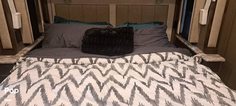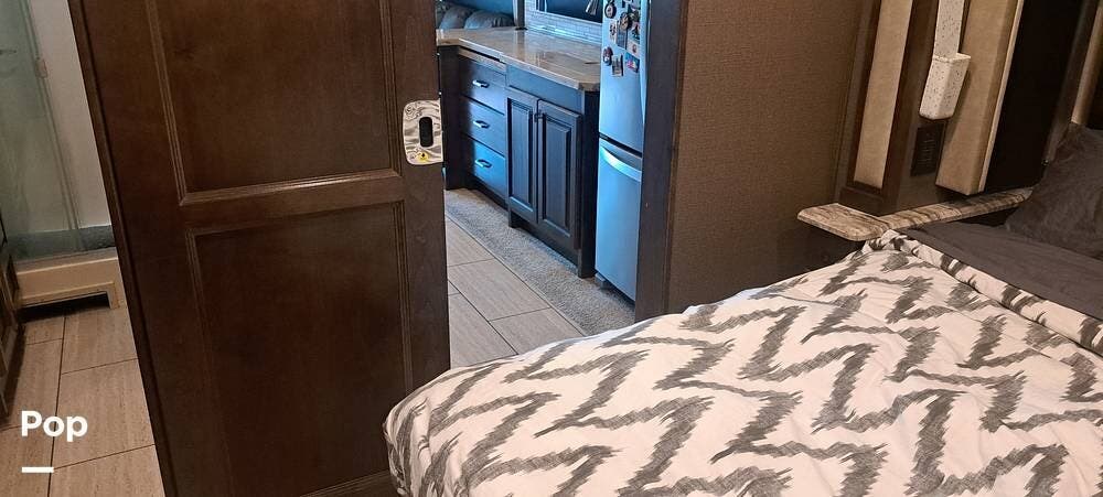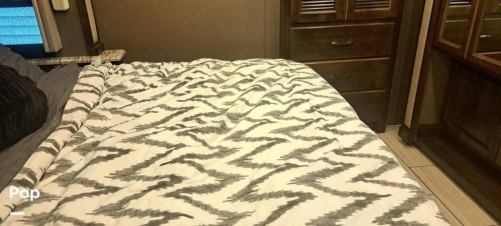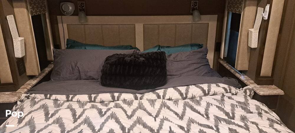When the day is done, the private rear bedroom provides a quiet and cozy retreat. The bed is spacious and supportive, and there's ample storage to keep everything organized, regardless of how long you're on the road. It's the kind of bedroom that doesn't make you miss your one at home.