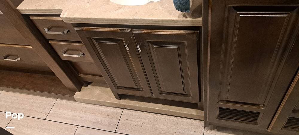 Step inside and you're immediately surrounded by warmth -- real hardwood cabinetry, plush seating, and tasteful design touches that give the entire space a welcoming, residential feel. It's more than just a cabin on wheels--it's a place to unwind, entertain, and make memories.