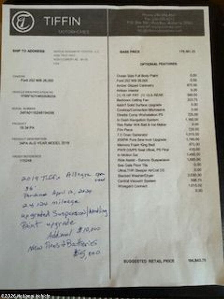 Looking to buy a 2019 Tiffin Allegro Class A RV?
