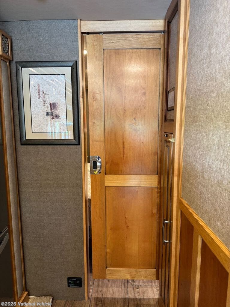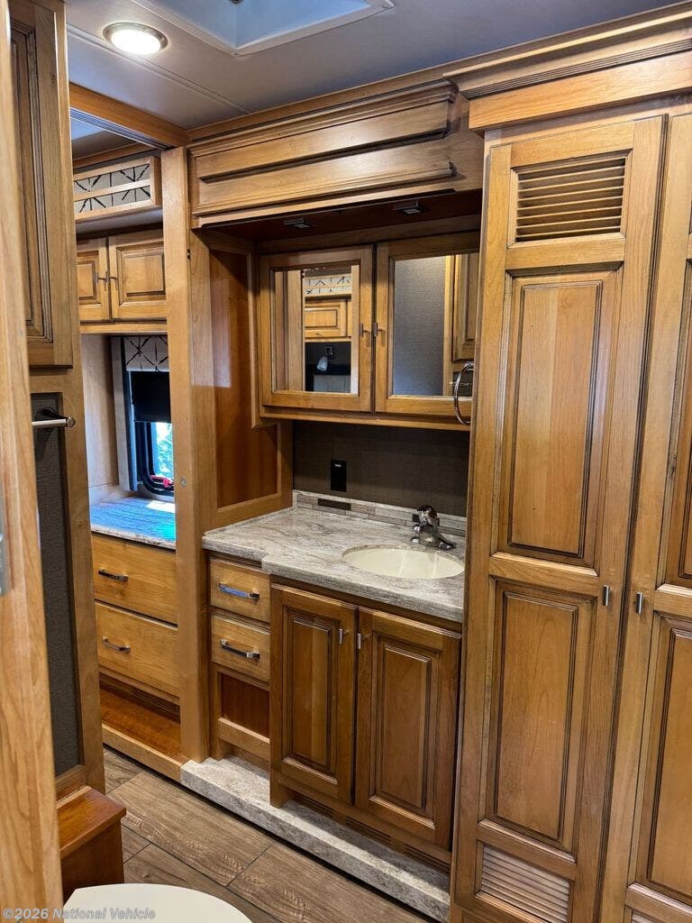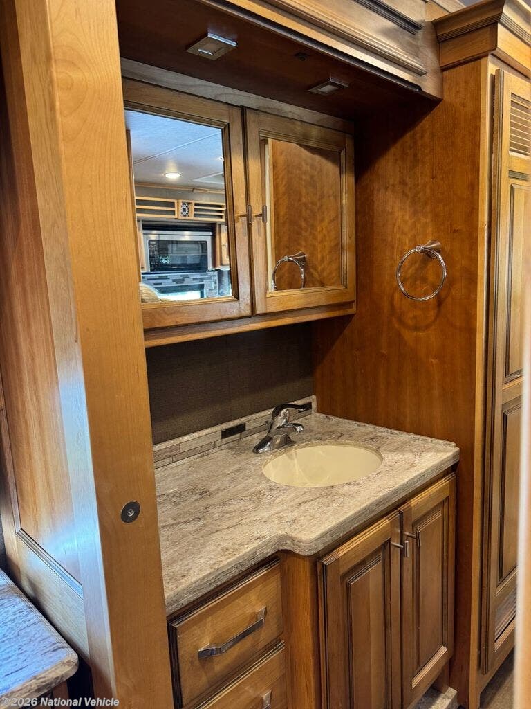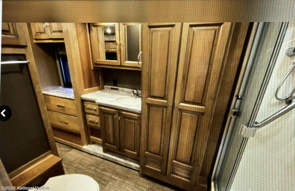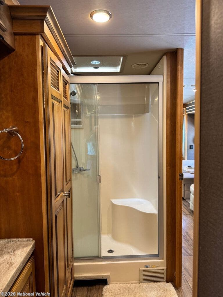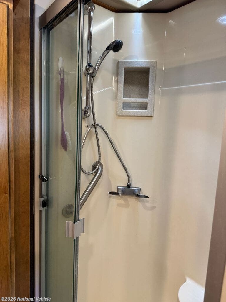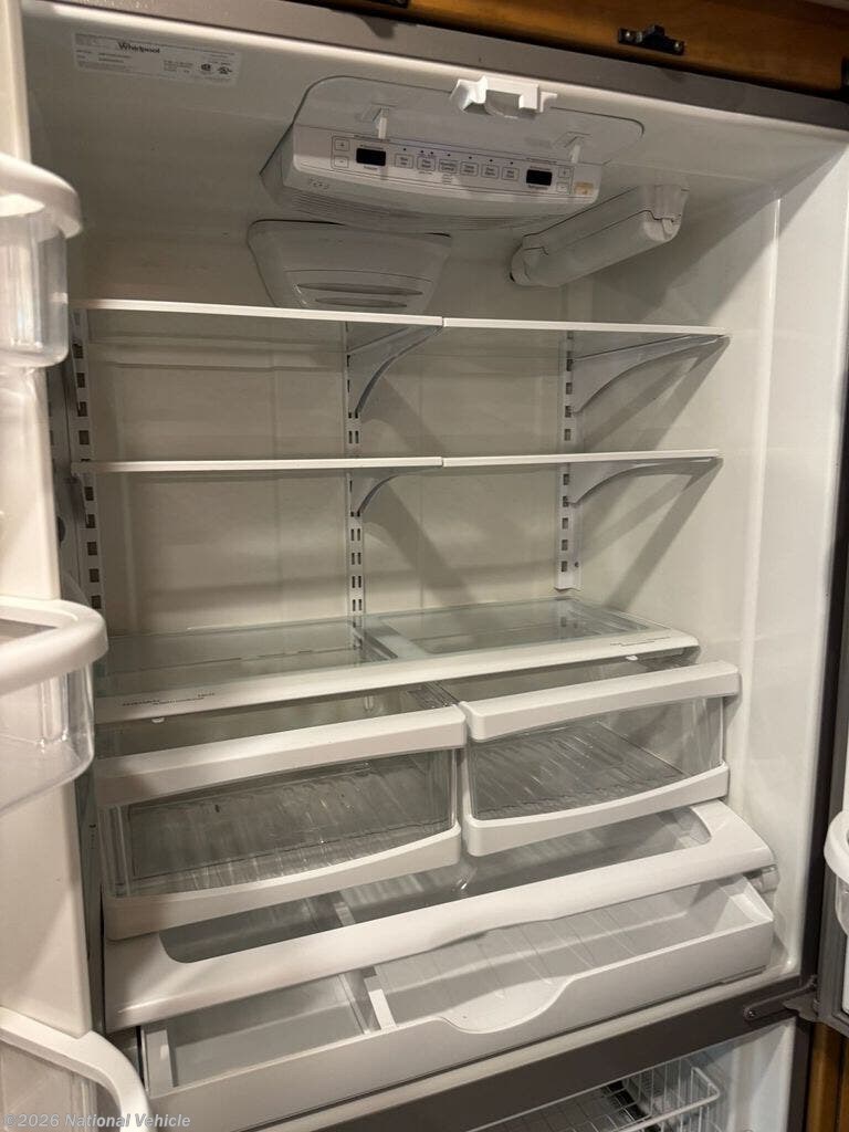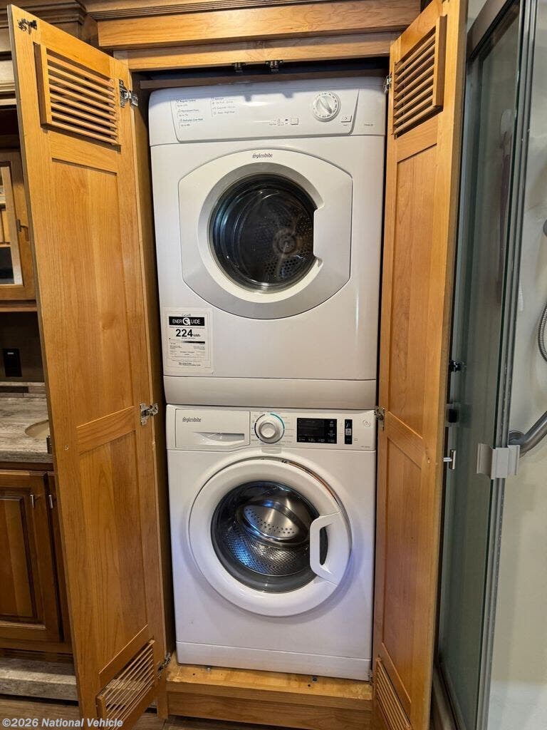 The bathroom features a larger shower, and the addition of a stacked washer and dryer brings true residential convenience to your travels. Comfort extends beyond aesthetics-this coach includes added insulation in all cabinets and under the doghouse, enhancing temperature control and reducing road noise for a quieter, more enjoyable ride.