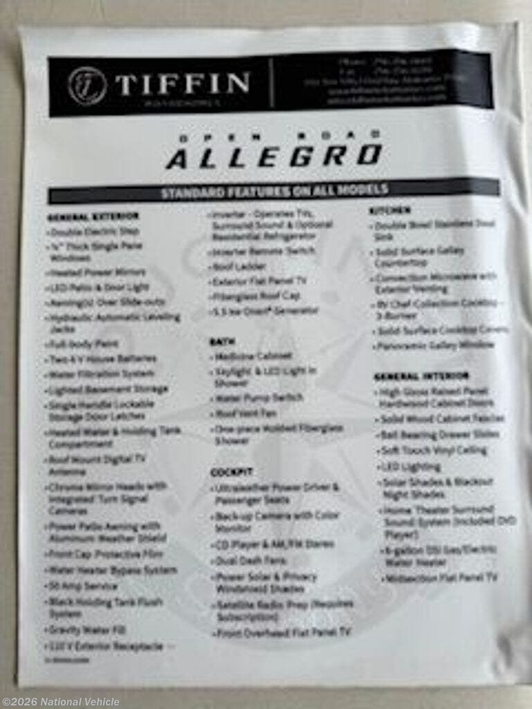 2019 Tiffin Allegro Open Road 34PA Literature