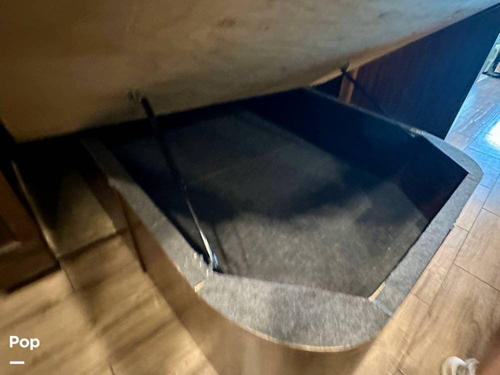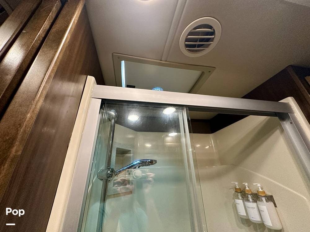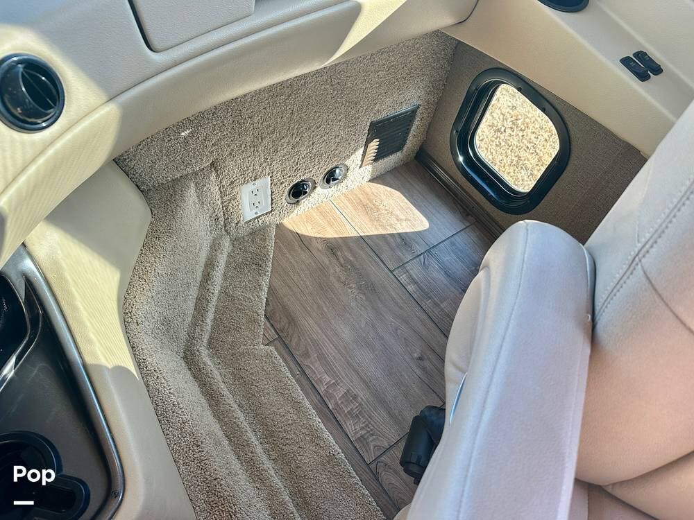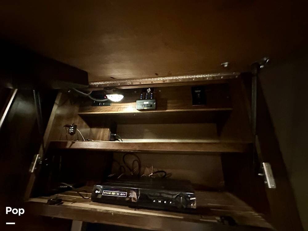 A second half bath off the main living area adds thoughtful practicality when guests are aboard. The drop-down bed over the cab area makes for additional sleeping for guests.