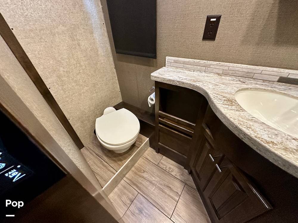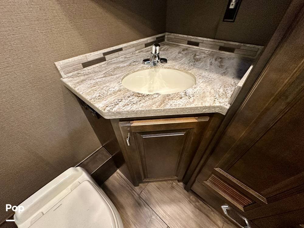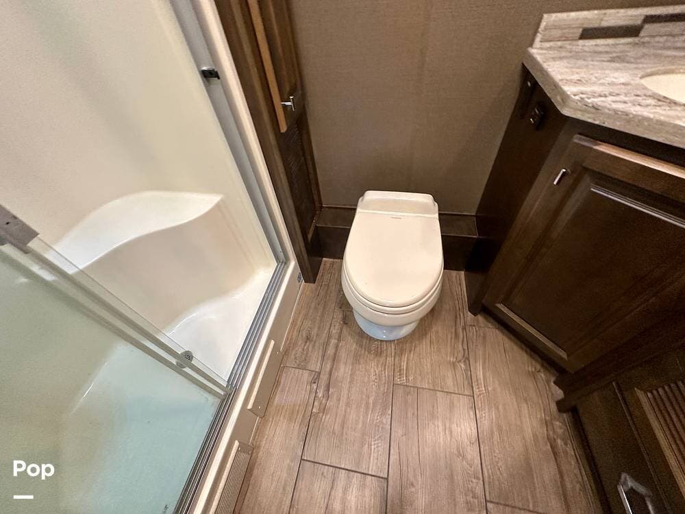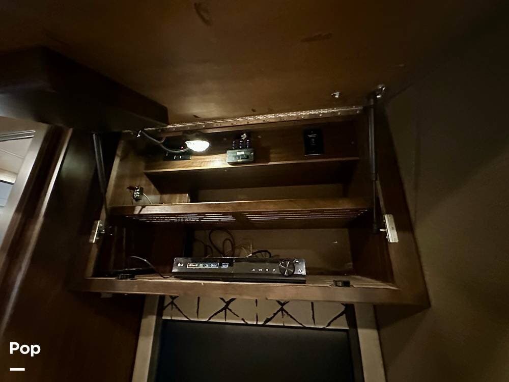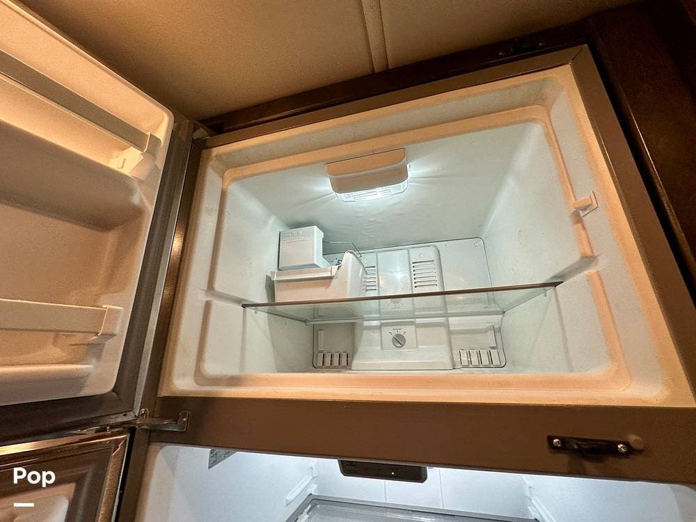 A second half bath off the main living area adds thoughtful practicality when guests are aboard. The drop-down bed over the cab area makes for additional sleeping for guests.