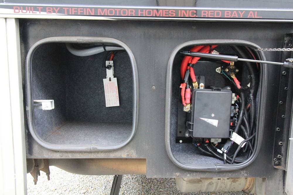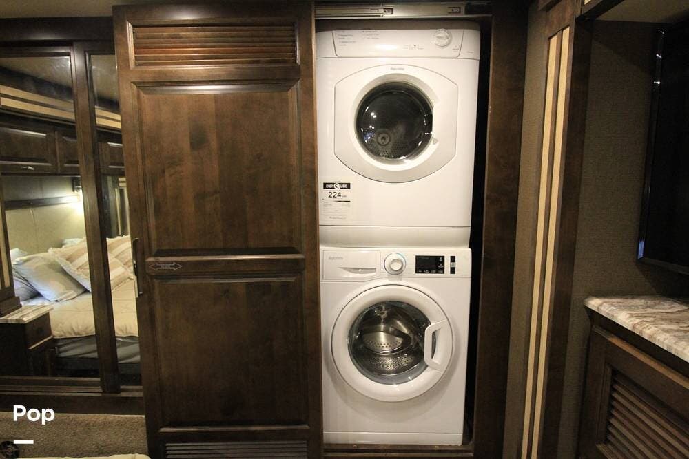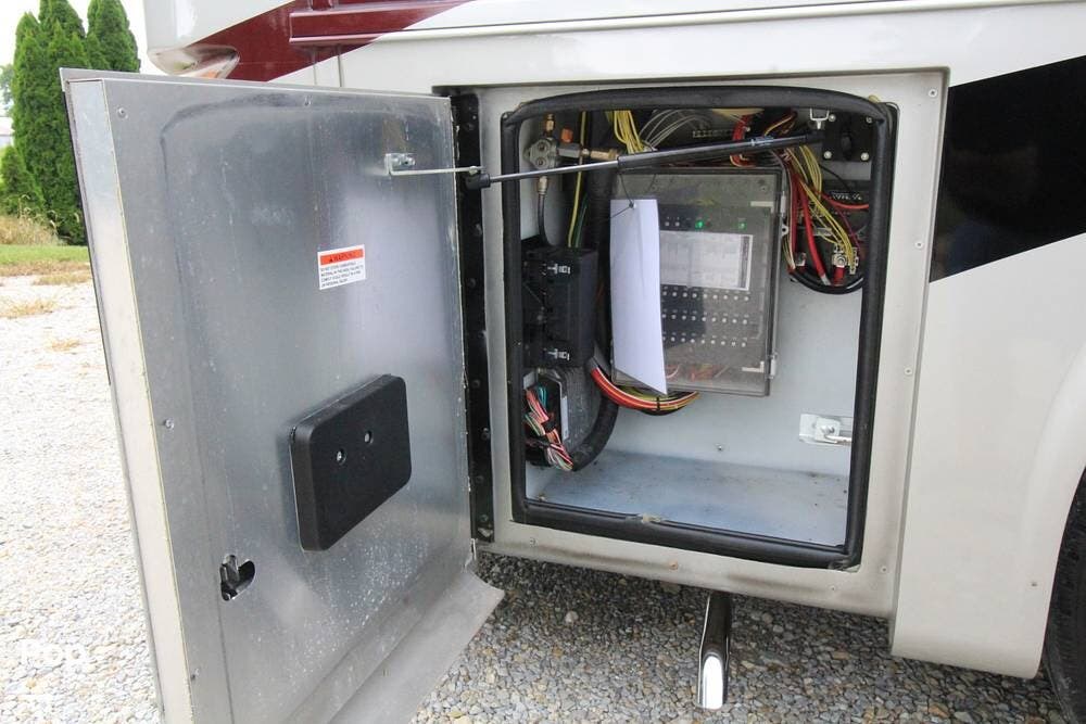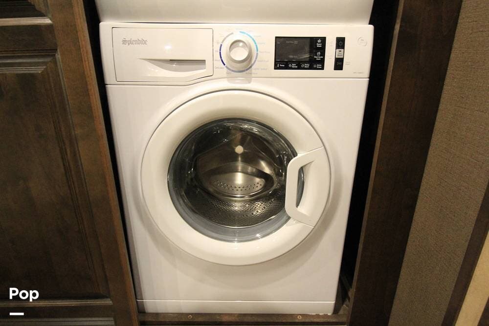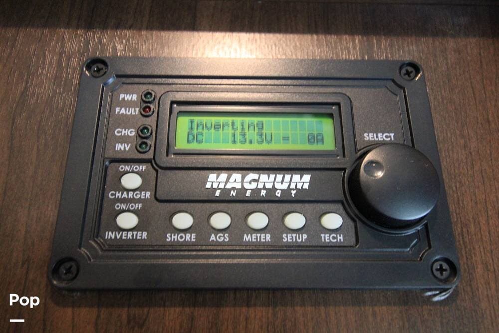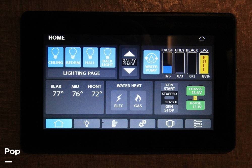 The features and options list is extensive, and while the full list is available in the Features Section of the listing, a few highlights are an 8.0kW Onan diesel generator, a Magnum Inverter, a stacked washer/dryer, a ceiling fan in the bedroom, and a central vacuum.