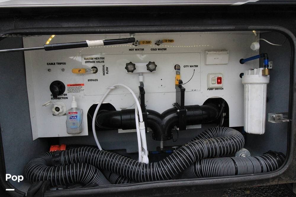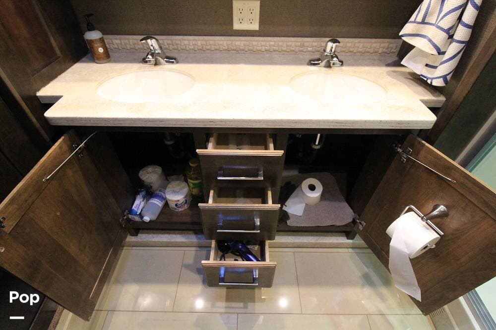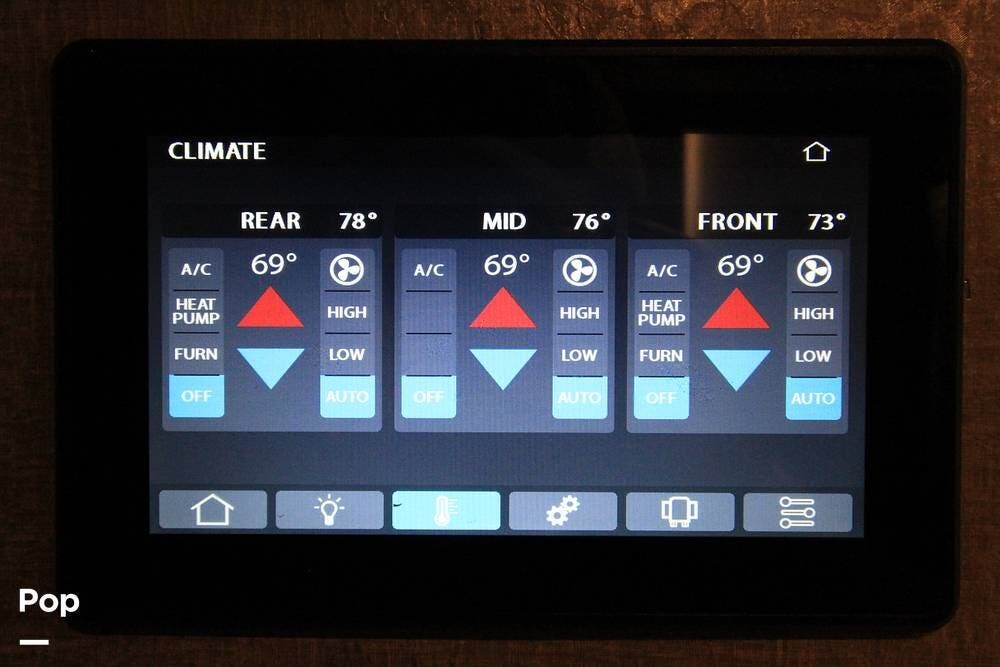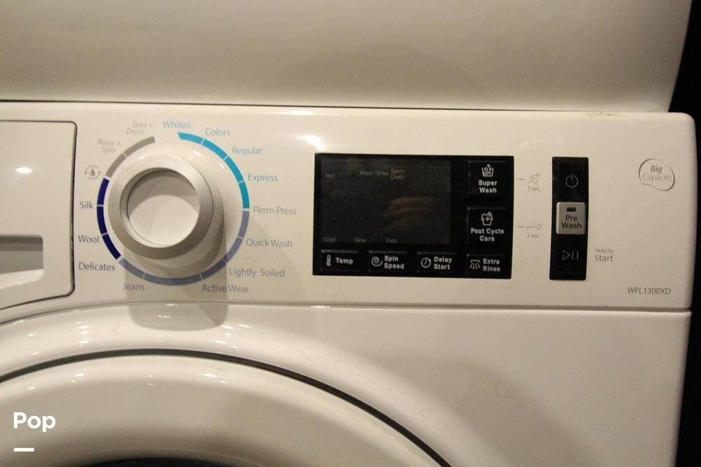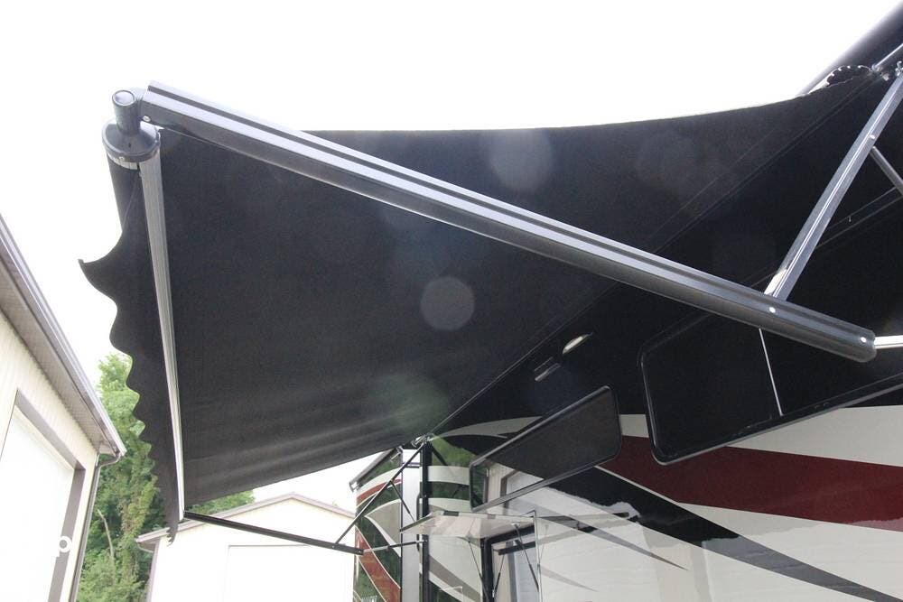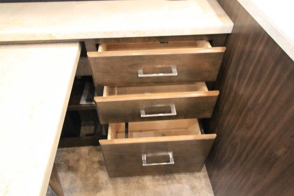 The features and options list is extensive, and while the full list is available in the Features Section of the listing, a few highlights are an 8.0kW Onan diesel generator, a Magnum Inverter, a stacked washer/dryer, a ceiling fan in the bedroom, and a central vacuum.