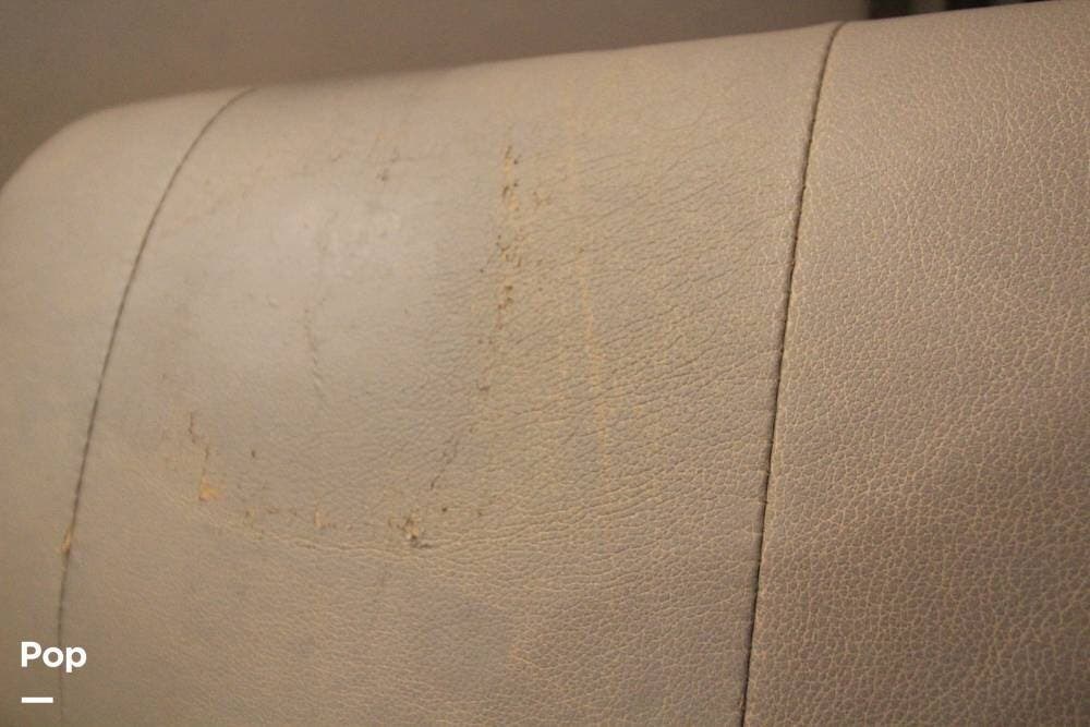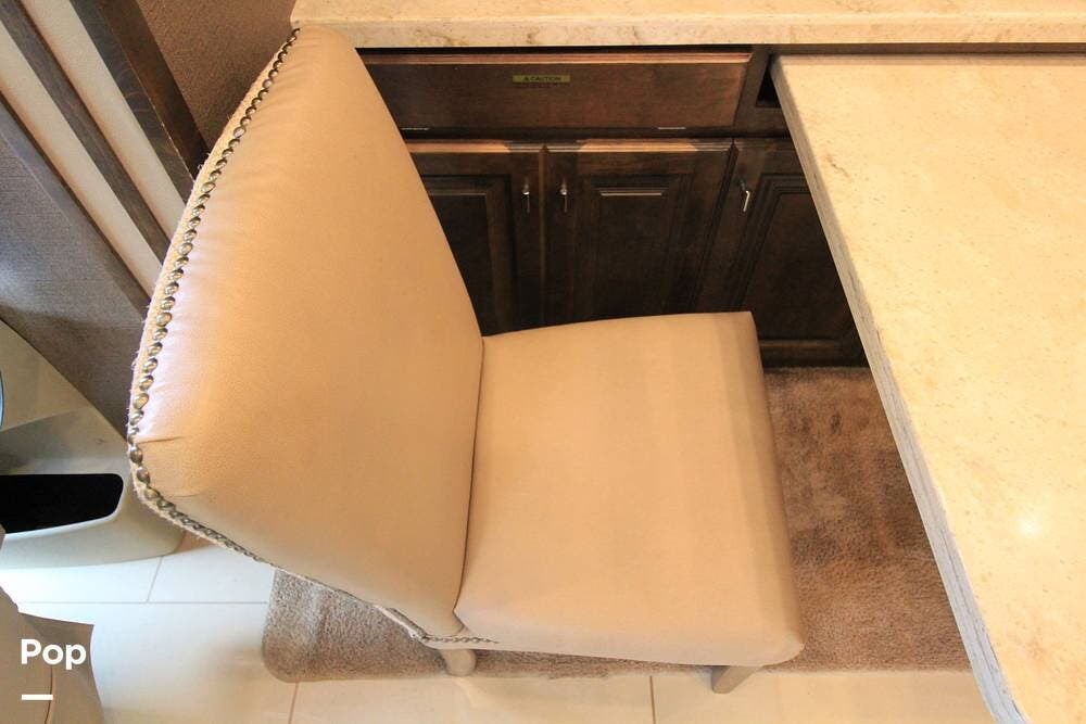 The interior decor is classically styled, with leather upholstery, dark wood cabinets and trim, and light tile floors.