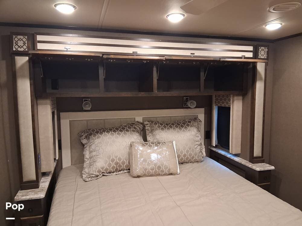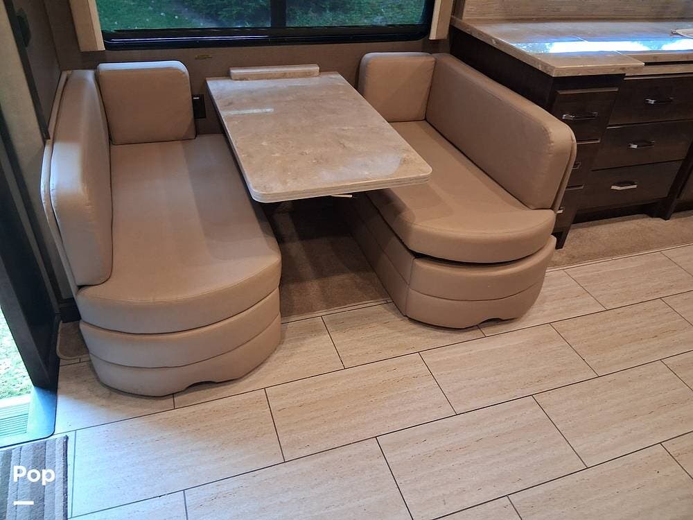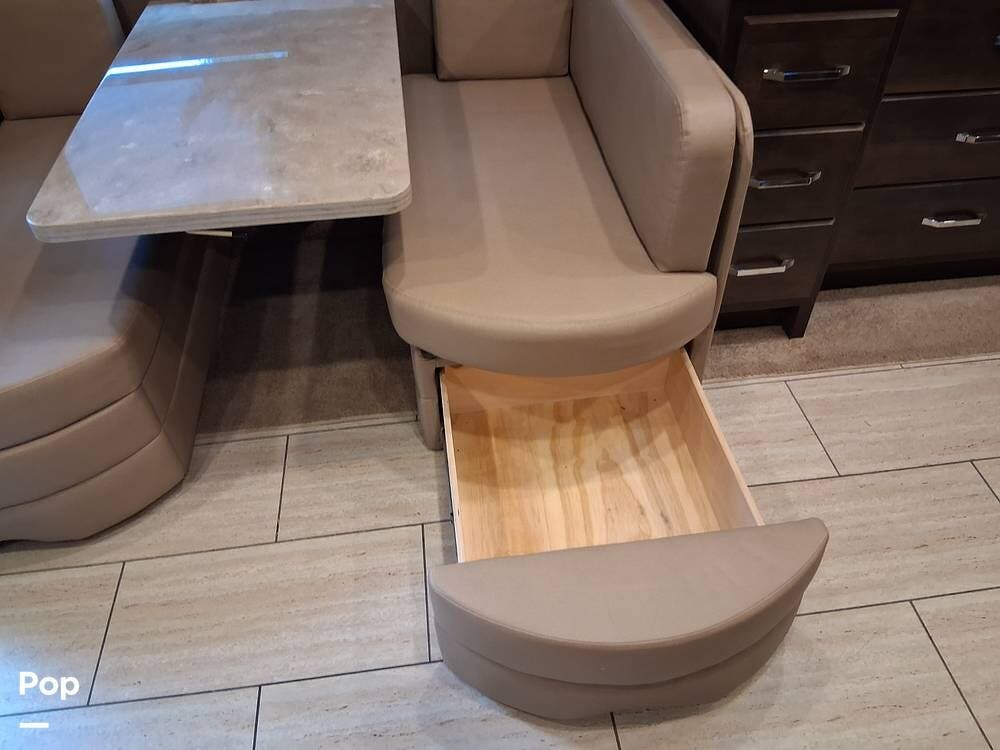 With its open floor plan and ample living space, this RV comfortably accommodates family and friends. Relax in plush seating or enjoy meals around the generous dining table -- every detail is designed for comfort.