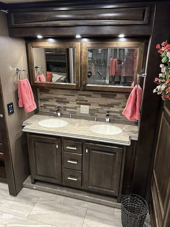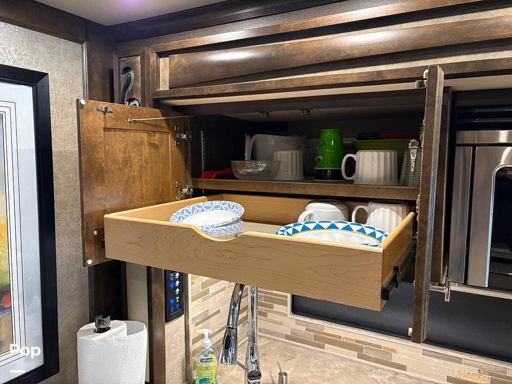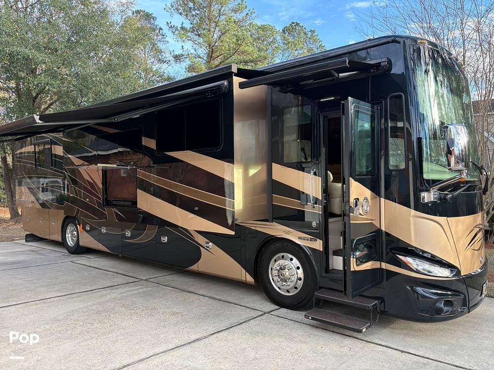 The 2019 Phaeton 40 IH by Tiffin is renowned for its luxurious features and high-quality construction, offering a roomy floor plan with four slide-outs. This provides ample living space, including a large living area, a well-appointed kitchen, and a comfortable bedroom, making it ideal for extended travel.