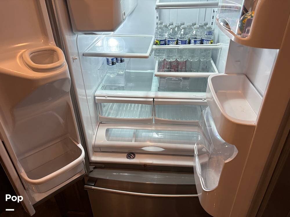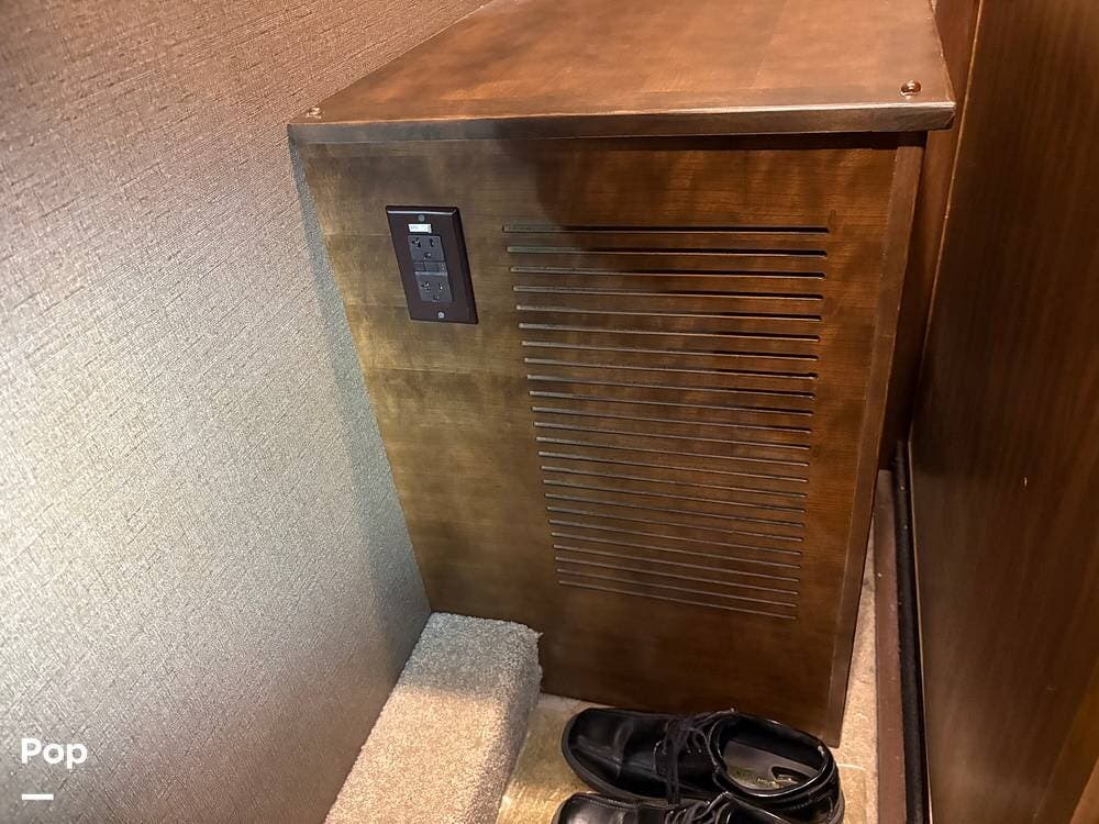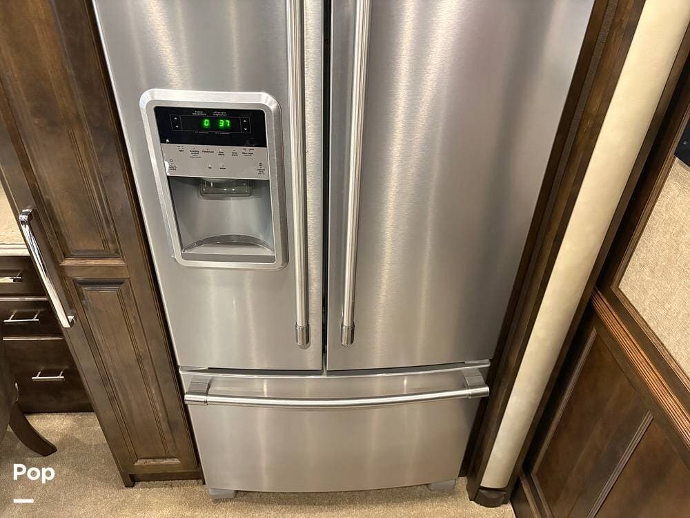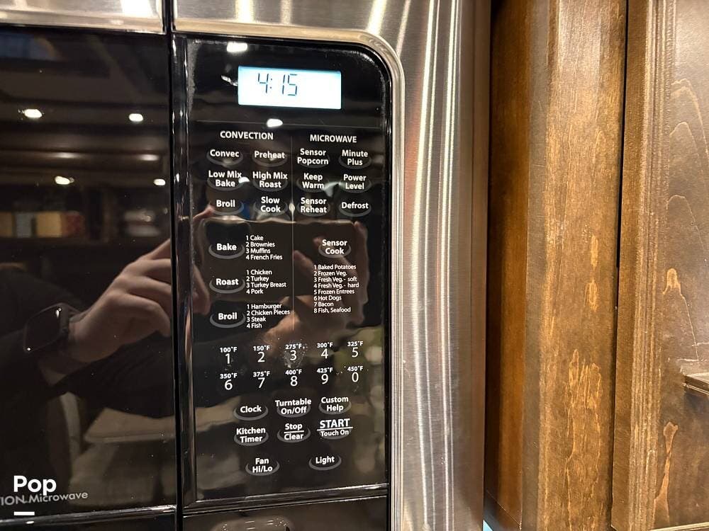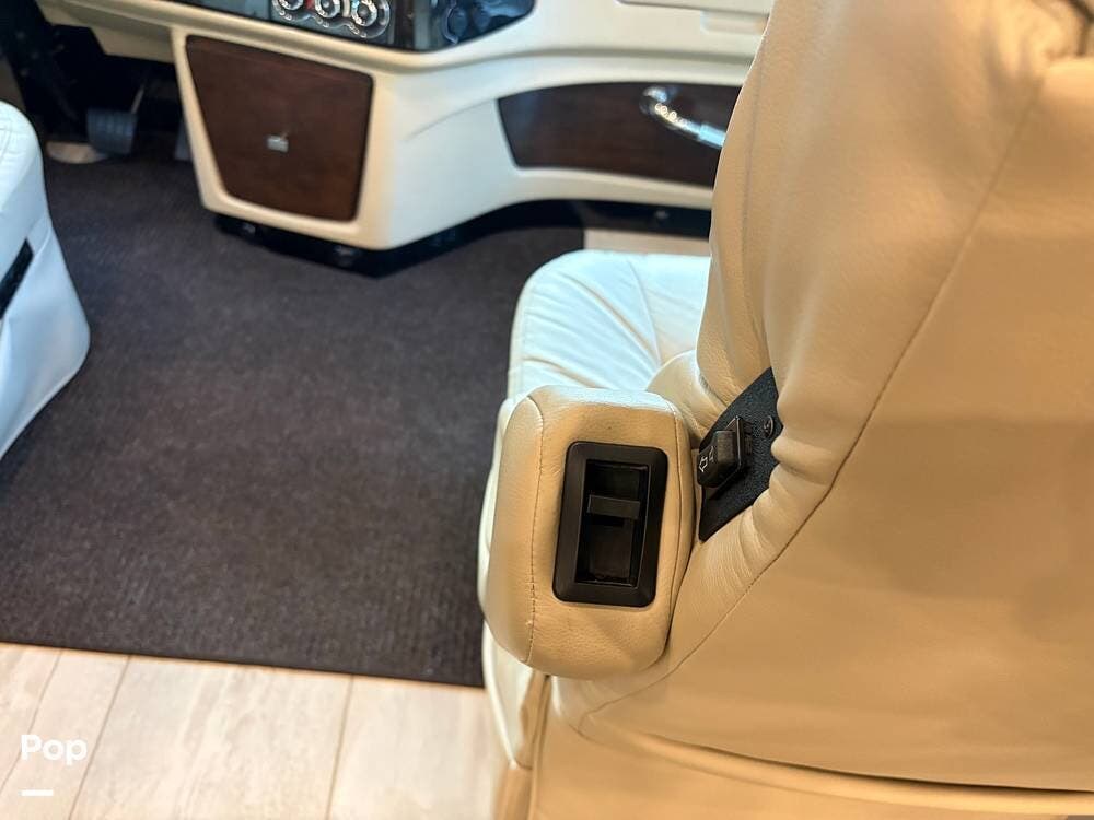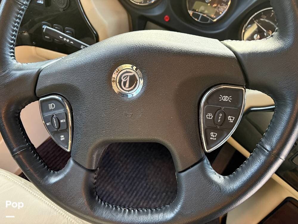 This Phaeton comes equipped with high-end amenities, including a residential refrigerator, solid surface countertops, and luxurious furnishings, as well as heated floors, a central vacuum, and advanced entertainment options that enhance the overall experience.