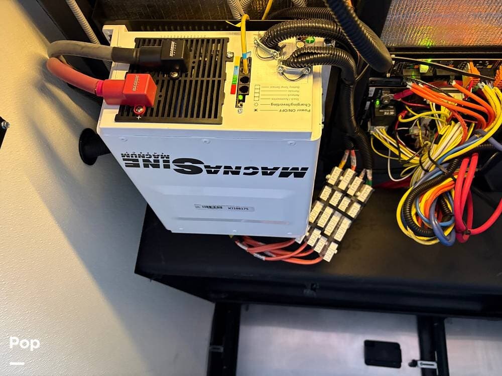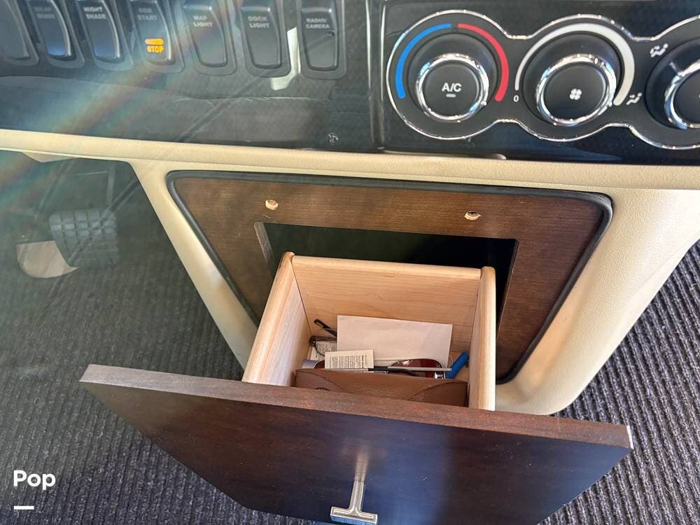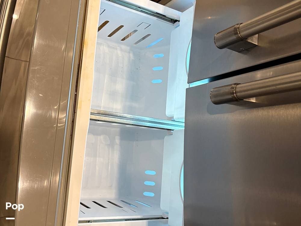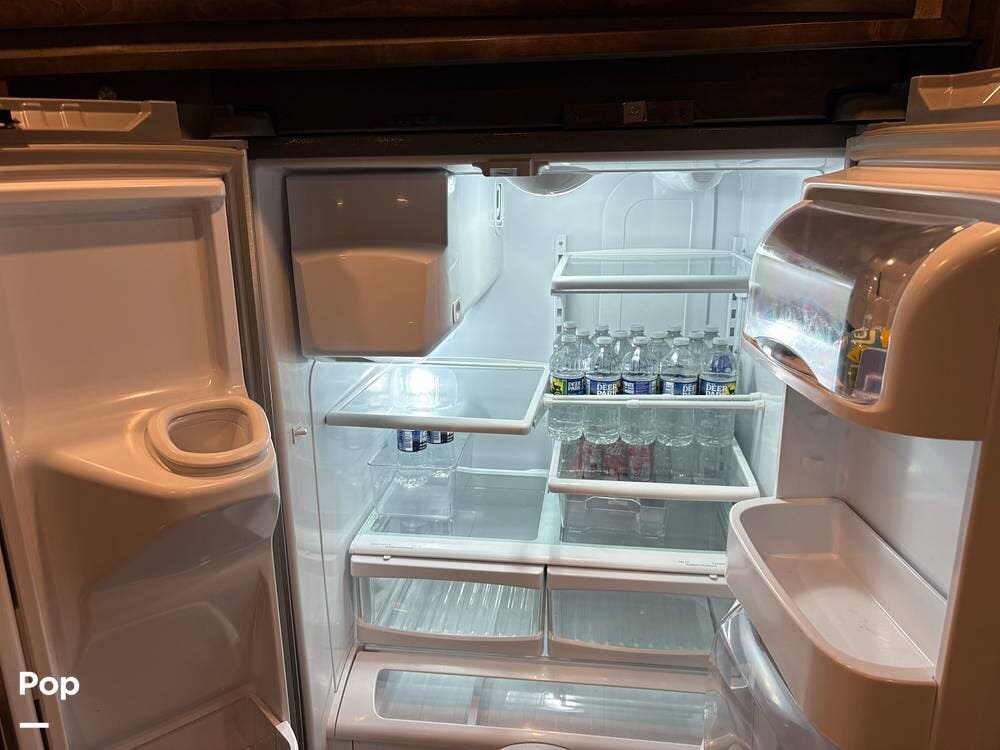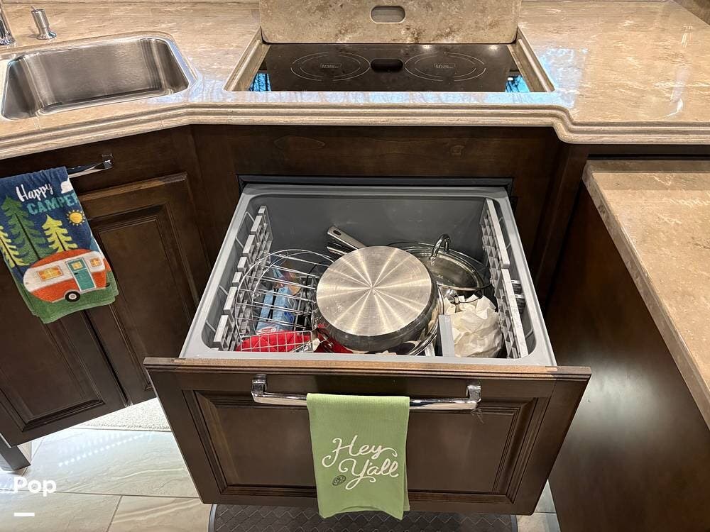 This Phaeton comes equipped with high-end amenities, including a residential refrigerator, solid surface countertops, and luxurious furnishings, as well as heated floors, a central vacuum, and advanced entertainment options that enhance the overall experience.