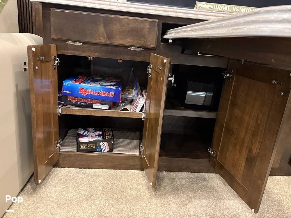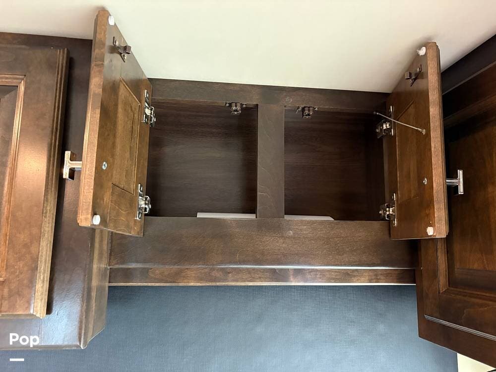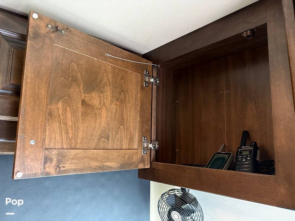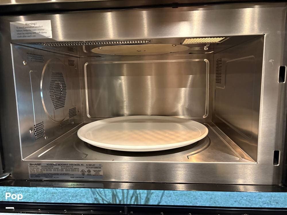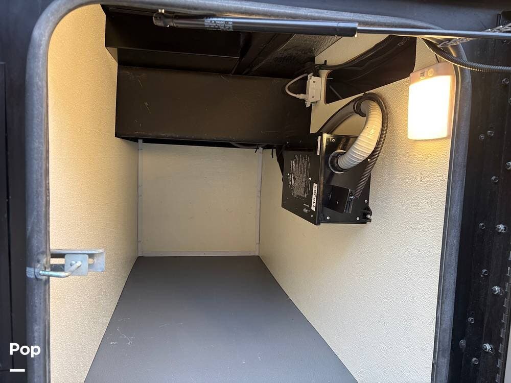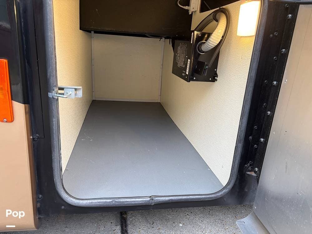 This Phaeton comes equipped with high-end amenities, including a residential refrigerator, solid surface countertops, and luxurious furnishings, as well as heated floors, a central vacuum, and advanced entertainment options that enhance the overall experience.