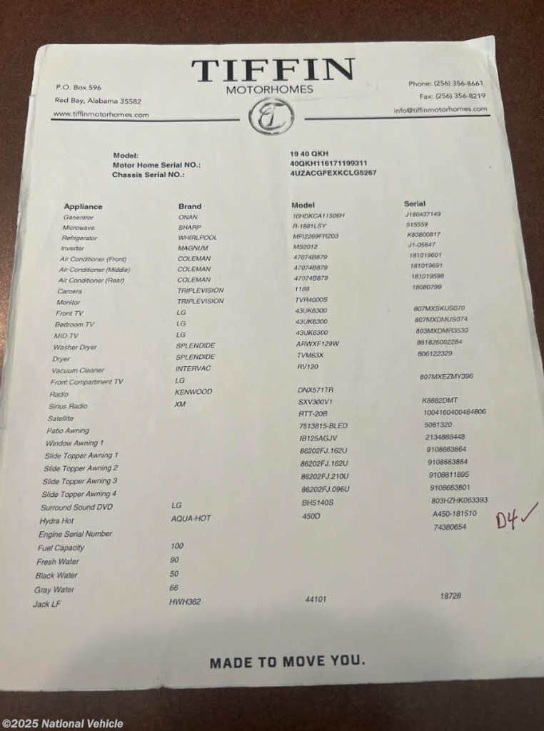 This meticulously maintained, all-electric diesel pusher combines Tiffin quality with premium upgrades, full Red Bay service history, and complete maintenance records. Always washed and waxed twice a year, and ready for its next owner.